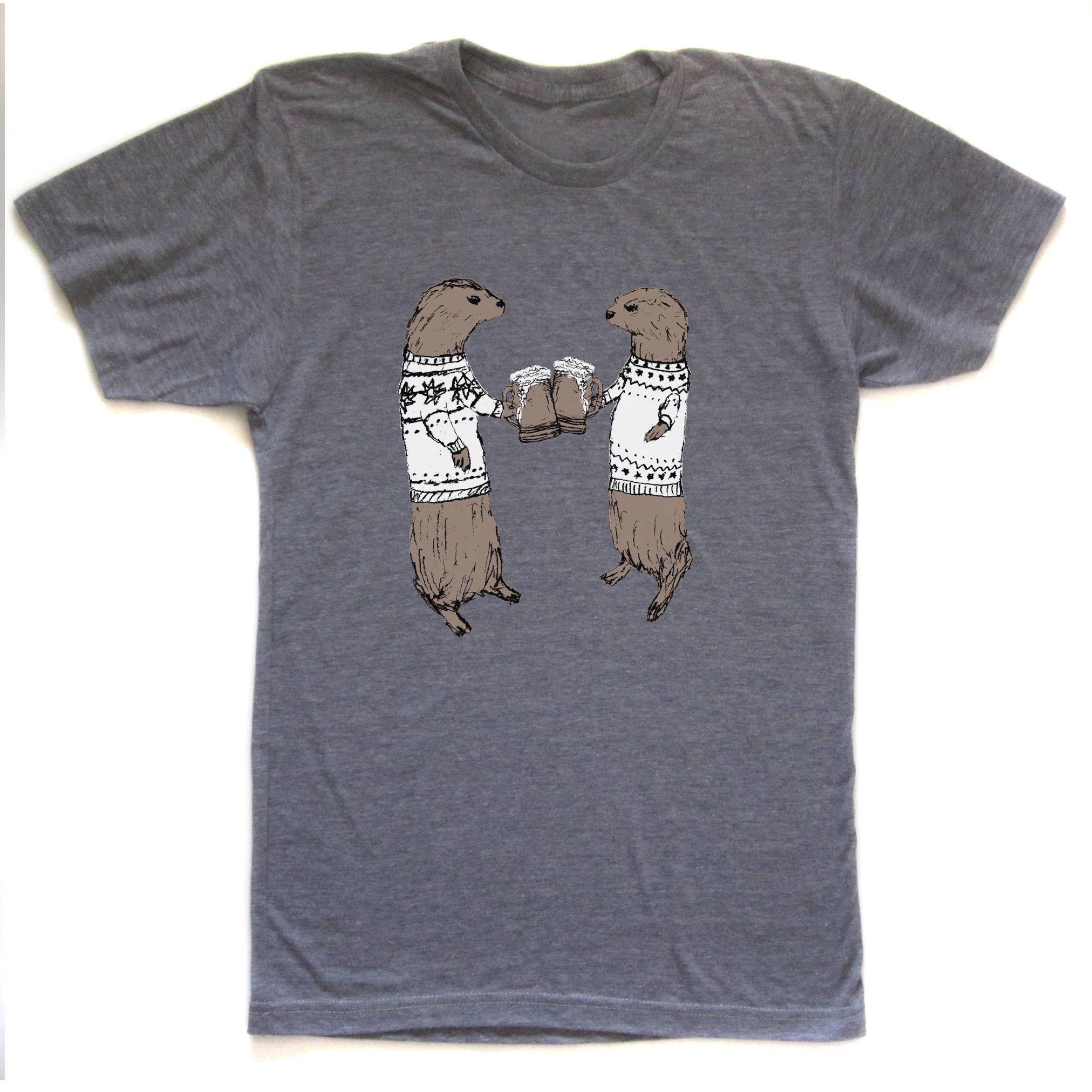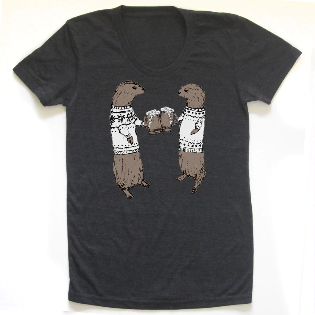 These otters clearly know how to have a good time! Hand-drawn with love and screen printed by hand. All artwork is original and printed in brown and black ink on a high-quality, super soft unisex sized tee.