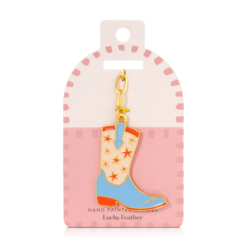 Lucky Feather Enamel Bag Charm - Cowboy Boot