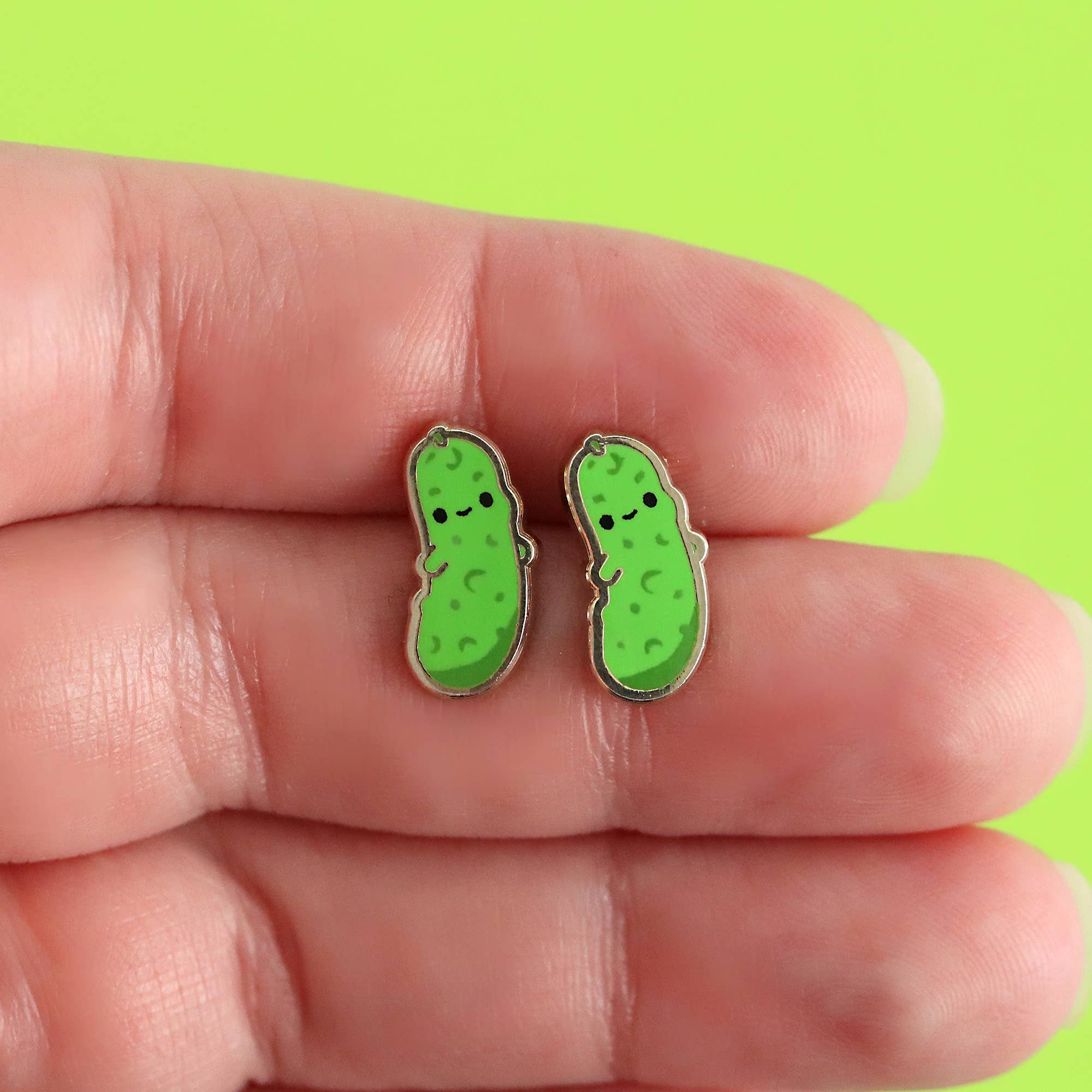 Enamel Stud Earrings - Pickle