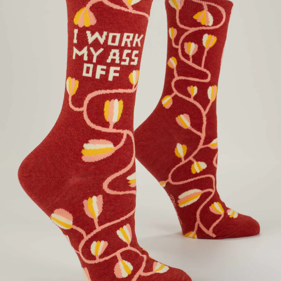 Blue Q Women's Crew Socks 'I Work My Ass Off'