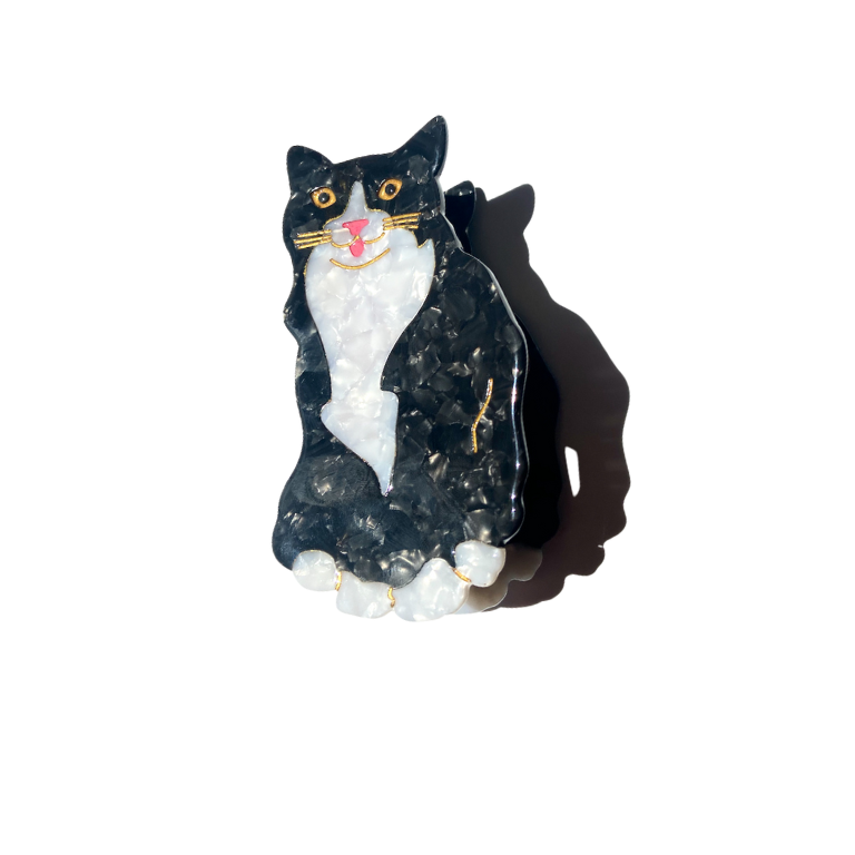 Hand-painted Tuxedo Cat Claw Hair Clip
