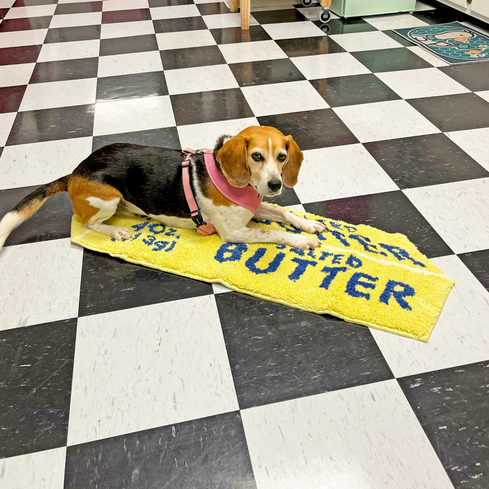 Butter makes everything better, and that is why we decided we were going to give it it's moment! This rug will go perfectly as home decor, whether you use it as a rug or hang it on the wall! Measures 38" x 14".