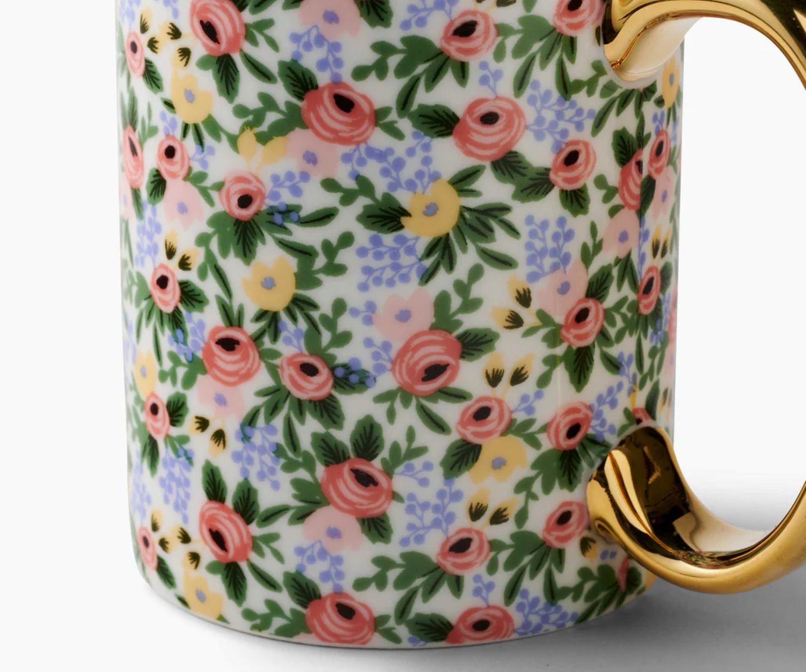 Take your morning coffee with a side of flowers. Rifle's porcelain mugs feature illustrated designs and a gilded rim and handle to add a little something special to your favorite beverage.
