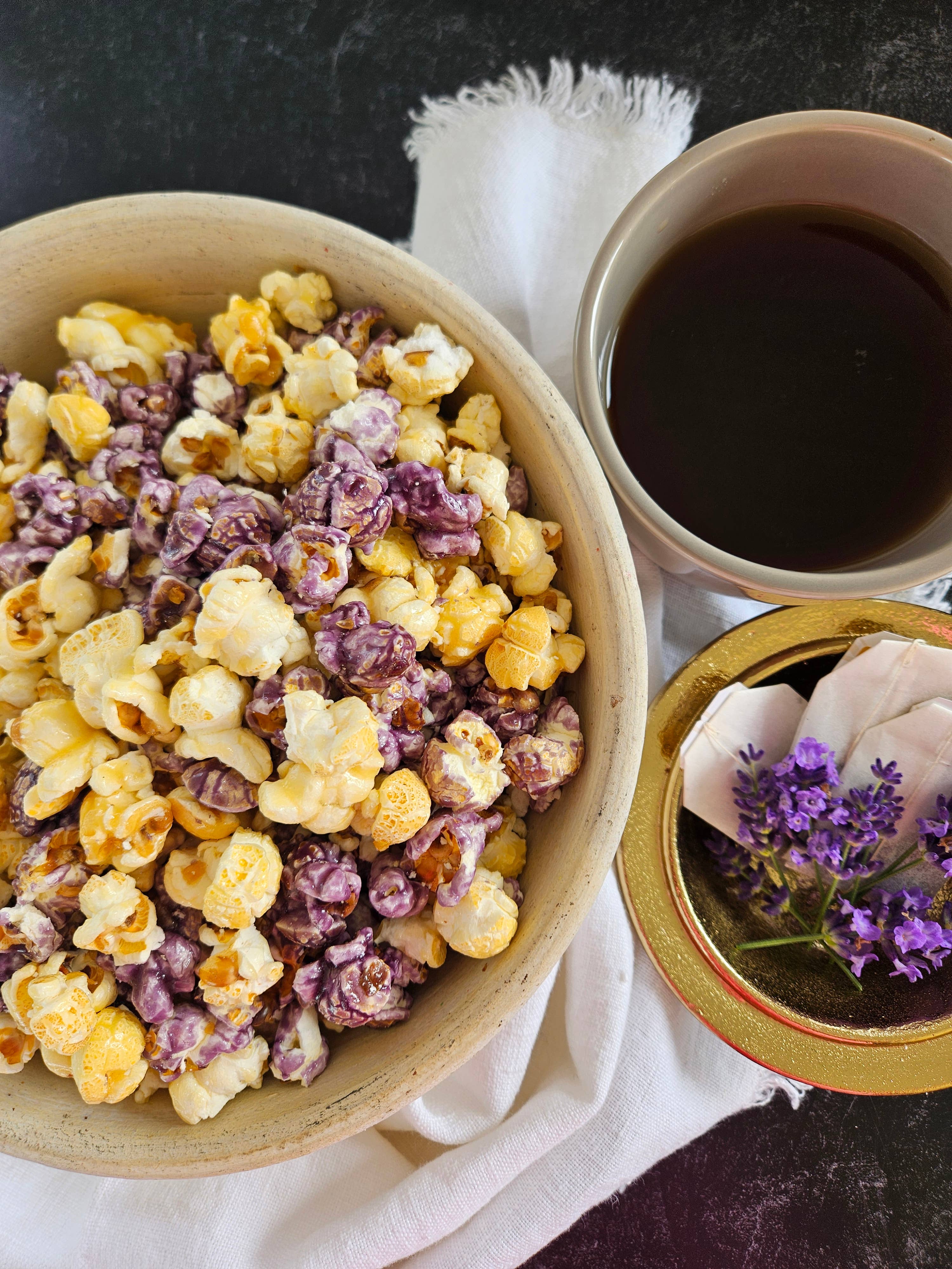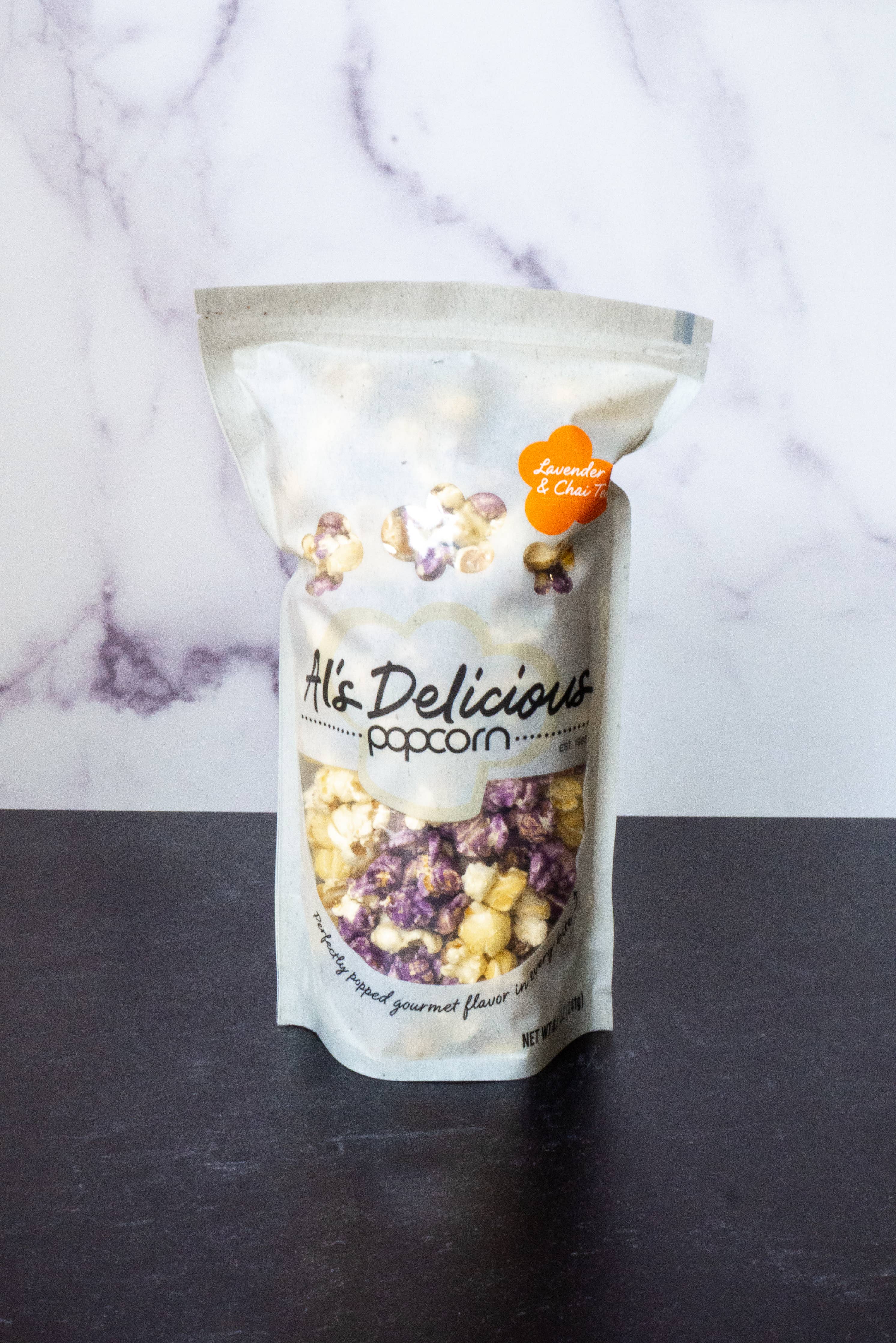 A refined fusion of floral and spice, our Lavender & Chai Tea Popcorn brings sophistication to every bite. Fragrant lavender petals harmonize with traditional chai spices—cinnamon, cardamom, and clove—delicately coating each kernel in a graceful balance of warmth and bloom. A luxurious treat for the season.