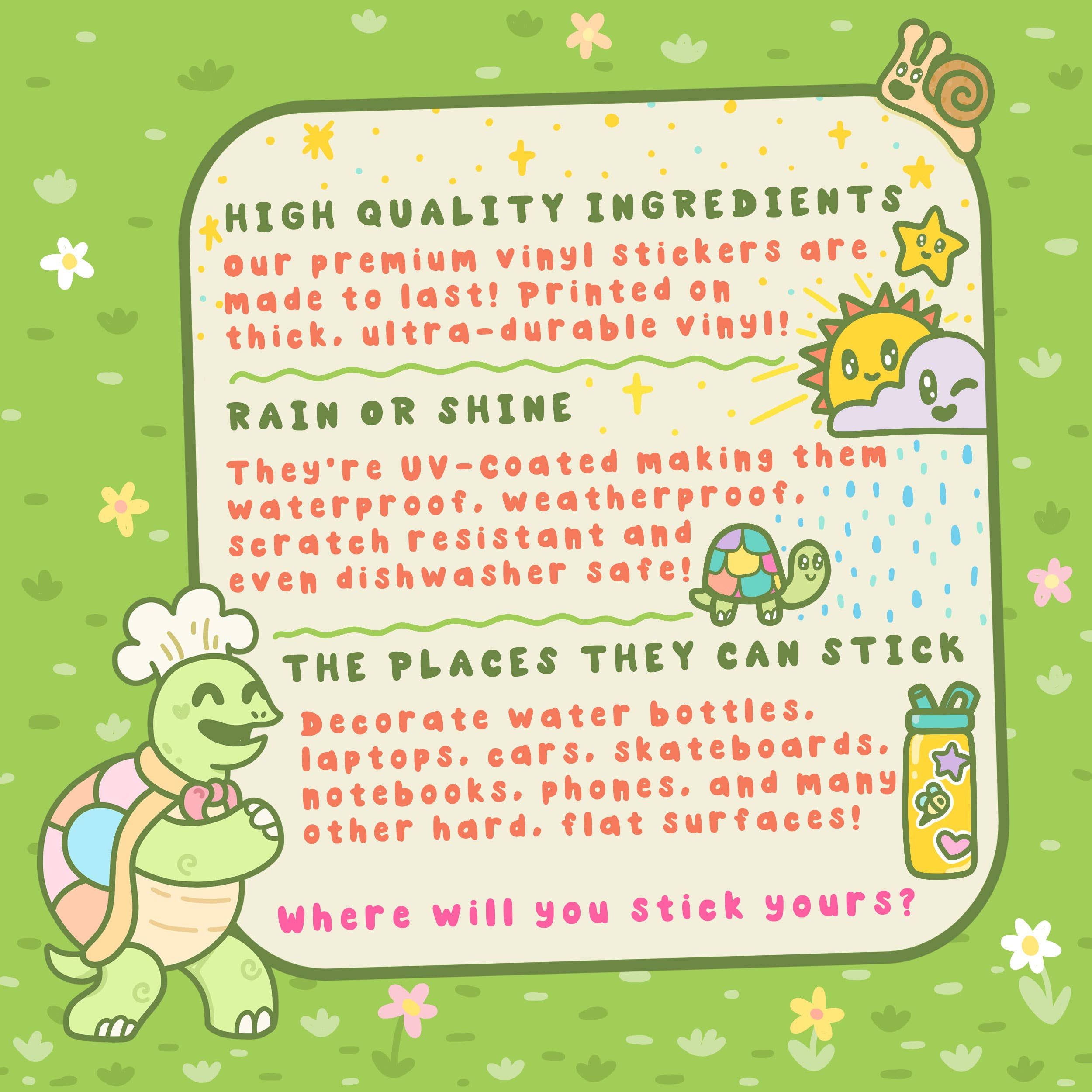 - Vinyl stickers are made from the highest quality ingredients on the market!