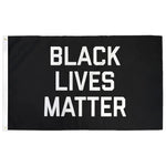3' x 5' Black Lives Matter (BLM) flag with grommets and double stitched edges to reduce fraying. ✍️"BLACK LIVES MATTER" in white text centered on a field of black. 🧵These flags are durable 200D polyester (most flags you'll find on the internet are cheap ~75d). 200D was selected as the perfect flag material; anything heavier doesn't fly well and the ""back"" doesn't get enough ink, anything lighter feels cheap and wont last very long. 🖨↩️This flag is printed as a one-sided print and make sure that the back has ample (around 90%) bleed-through. 🏳️ Ready to be used on a flag pole, boat, hung on a wall, or to proudly march with.