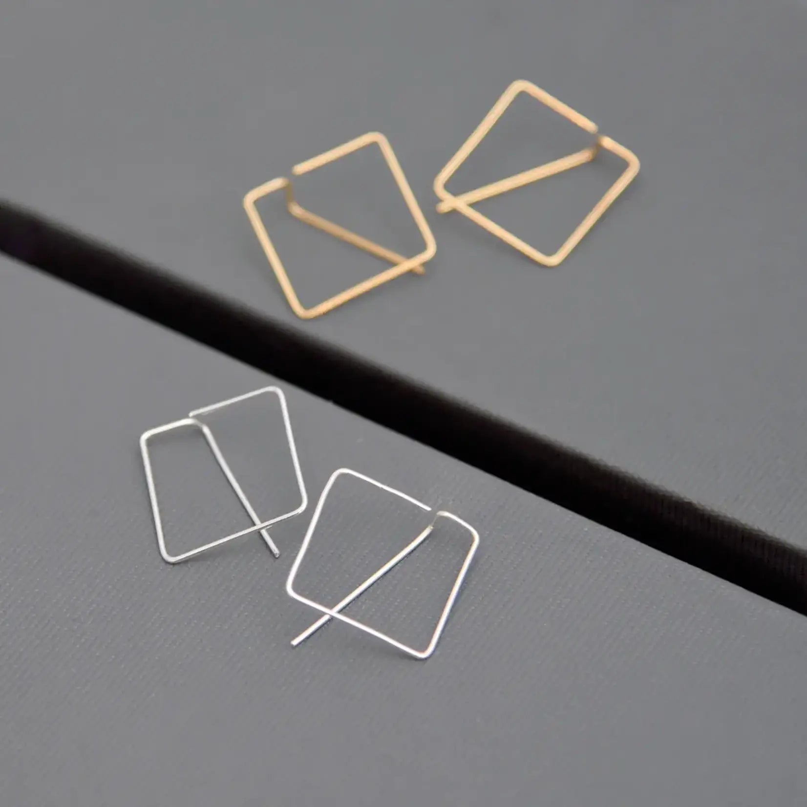 A dainty set of sterling hoops! These earrings, square shape hoops, hang directly through the ear lobe and are lightweight and easy to pair with any outfit.