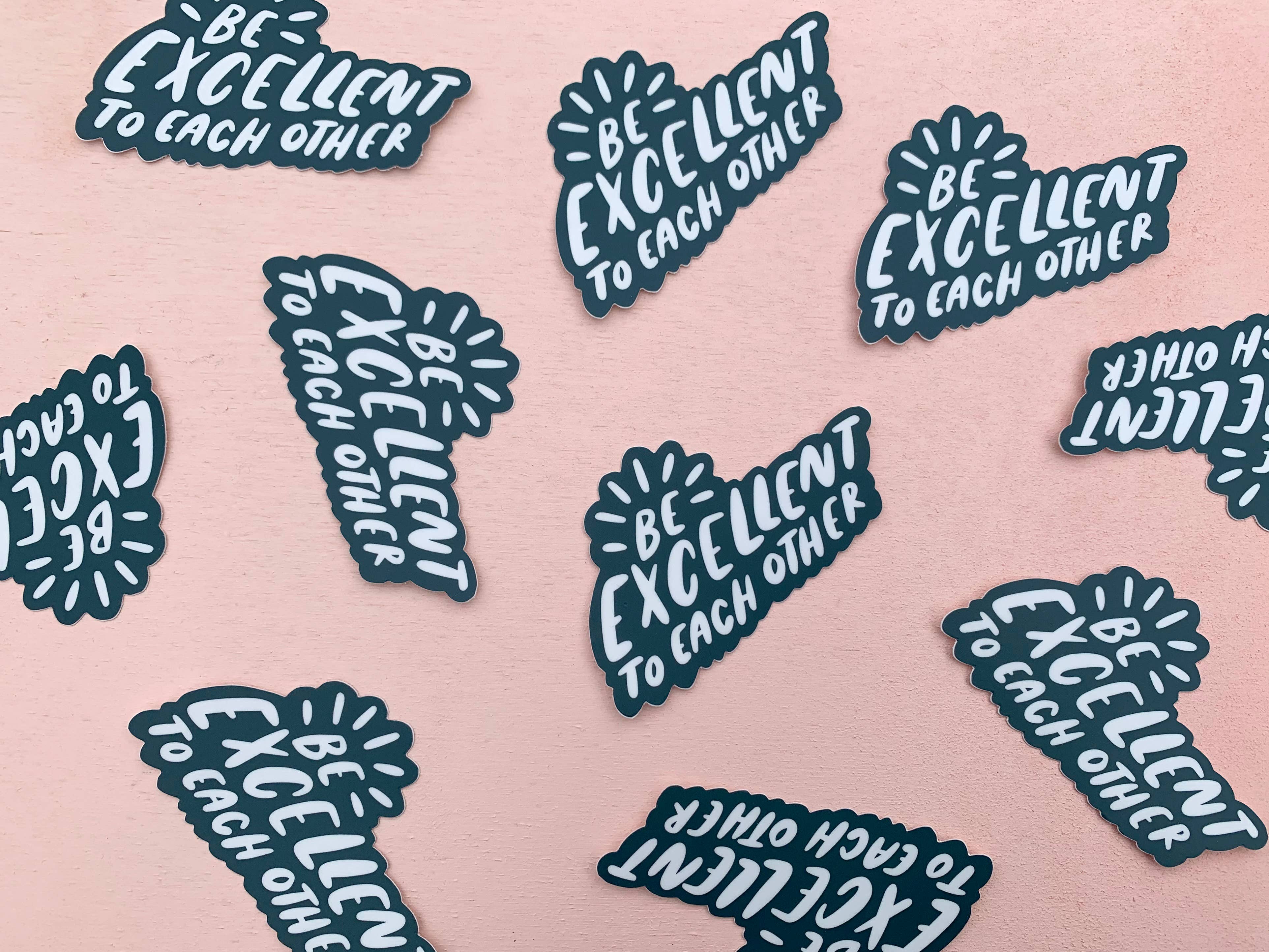 For every Bill and Ted's Excellent Adventure fan and also just as a general rule of thumb. This 3" vinyl sticker is waterproof, heatproof, resists scratches and won't fade in the sunlight so you can put it on whatever your lil' heart desires: coffee tumblers, water bottles, coolers, cars, bikes - the options are basically endless.