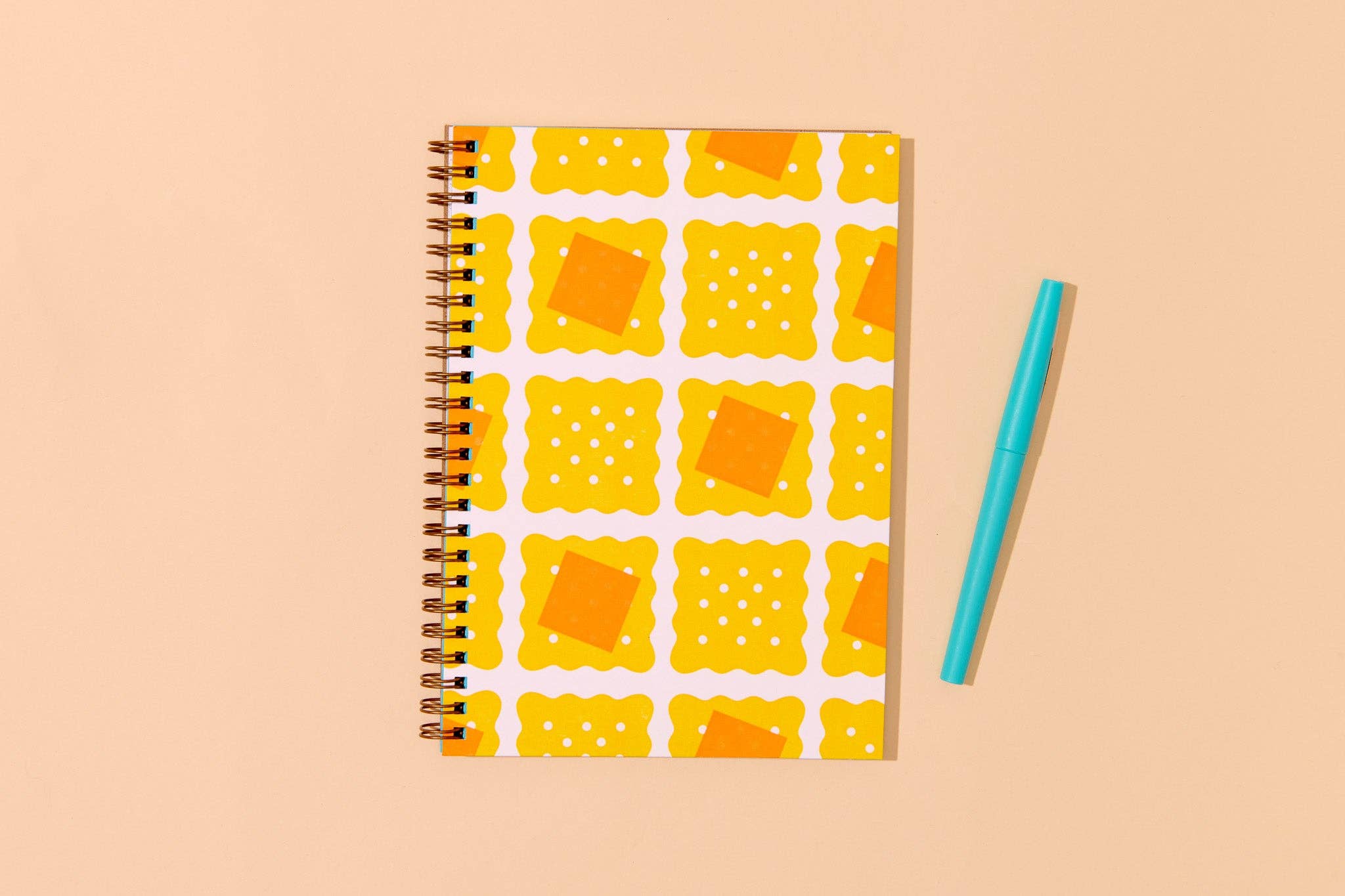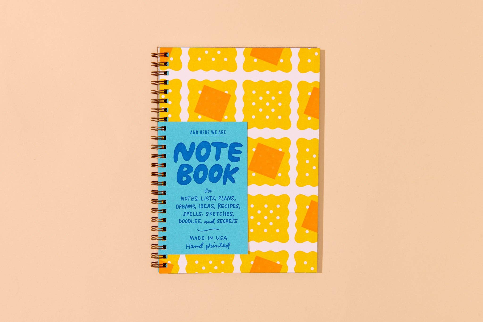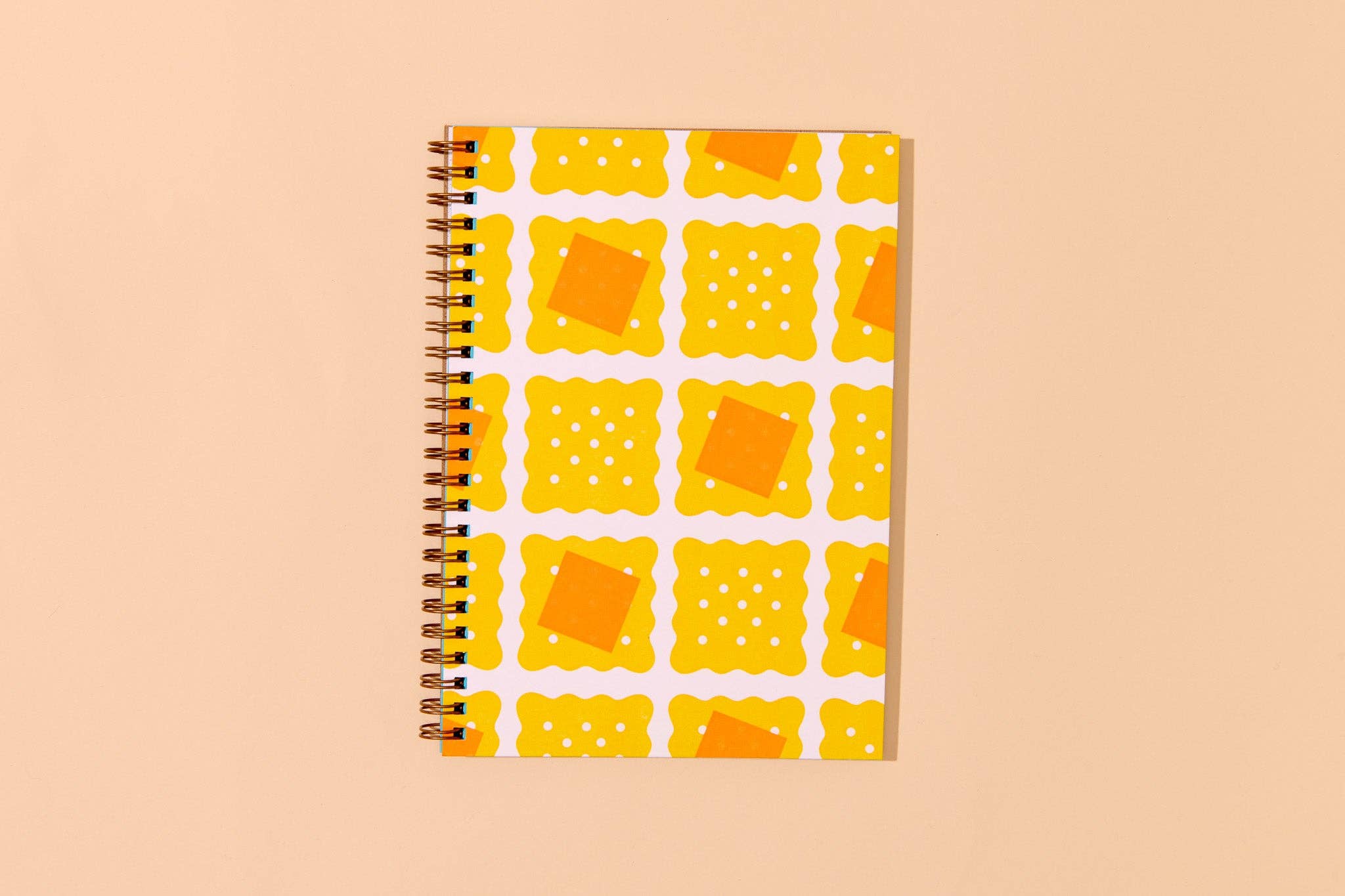Finally, a notebook that celebrates the world's best snack: cheese and crackers! This spiral notebook is the perfect, portable size to hold your notes, lists, plans, dreams, ideas, recipes, spells, sketches, doodles, and secrets.