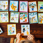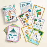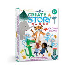 Volcano Island Create a Story begins with a tiger, three blue monkeys, a pair of children and a volcano.... Is there hot lava involved and what about the other animals that show up in your own story? Recurring characters, locations, and props encourage linking the cards in endless combinations for fresh, new stories every time it's played. Colorfully illustrated by Alex Barrow.
