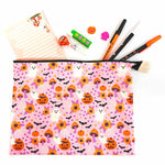 Cute Spooky Floral Halloween XL Cotton Zipper Pouch