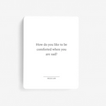 Great dates are made up of great conversations: ones where we find out more about one another, discover what makes us both tick, share some of what we like and reveal how we see the world. This is a collection of cards that can be used on a date to help provoke the best kinds of discussion.