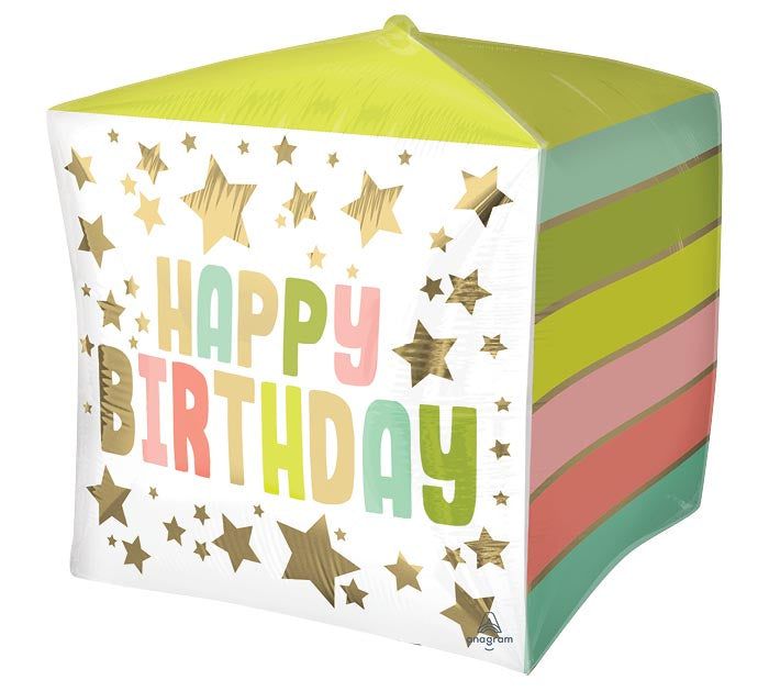 Happy Birthday Gold Stars and Colors Cubez Balloon