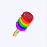 This queer enamel pin measures 1.25 inches with silver enamel and a butterfly clasp.