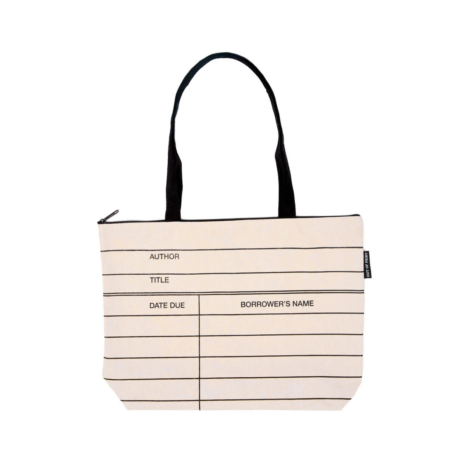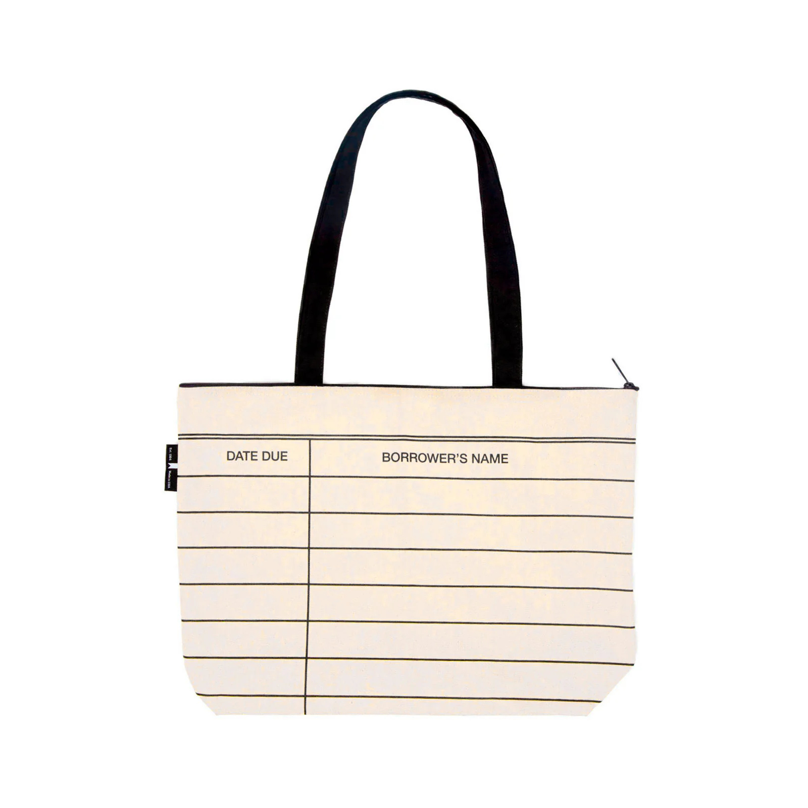 Express your love for libraries with this oversized library card tote with zipper closure.