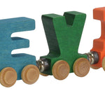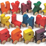 Bright Color NameTrains Letter Cars are crafted from locally sourced and sustainably harvested hard maple. Magnets allow you to attach cars to form names and words. Each Bright Color NameTrains Letter Car comes in assorted colors, you will receive a rainbow assortment. The Letter Car measures about 2.4" tall and about 2.7" long. Compatible with our and other wooden train sets. Non-toxic finish.