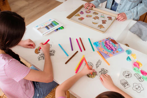 This adorable bracelet making set is the perfect jewelry project for BFFs to do together! This shrink art kit includes enough pre-cut shrink charms and colored cords to make 20 bracelets. Each shrink charm is one-half of a famous bestie, like peanut butter and jelly, a cloud and a rainbow, and much more! Just color in the design, have an adult put them in the oven, and marvel at how in only a few minutes, bracelet-ready charms appear! Then kiddos can decide: are they more peanut butter than jelly? More milk than cookie? Whatever they choose, these DIY charm bracelets are a delightful way to spend an afternoon!