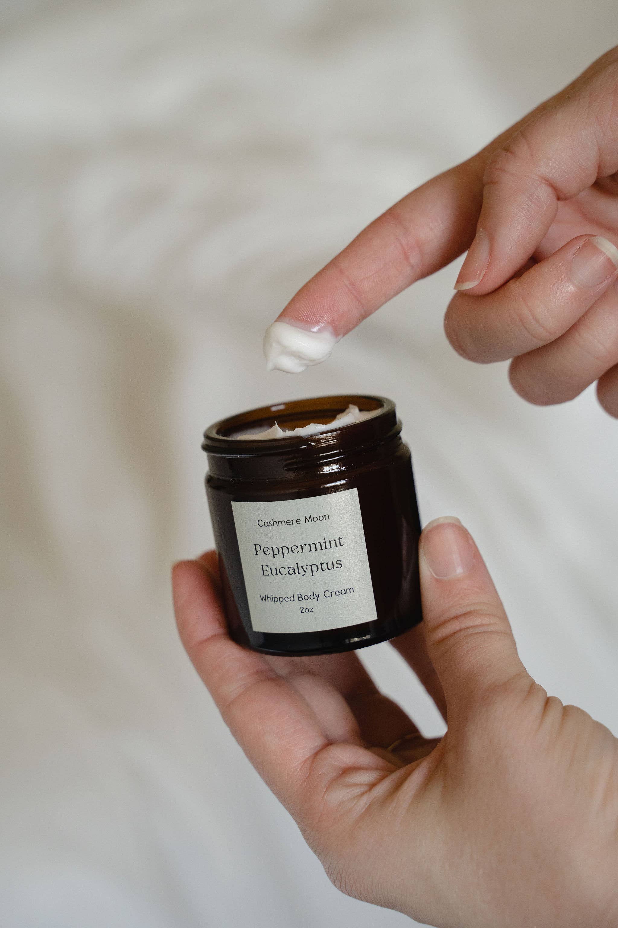 Quench thirsty skin cells with the Peppermint Eucalyptus Whipped Body Cream. This vegan cream features a therapeutic blend of peppermint and eucalyptus to boost the mood and calm the senses. Shea Butter, Cocoa Butter, and Aloe Vera lock hydration deep into dermal layers, leaving skin visibly soft and hydrated. Powerful Provitamin B5 reinforces a weakened skin barrier, restoring elasticity and reducing inflammation, while a robust blend of humectants draws in atmospheric moisture.