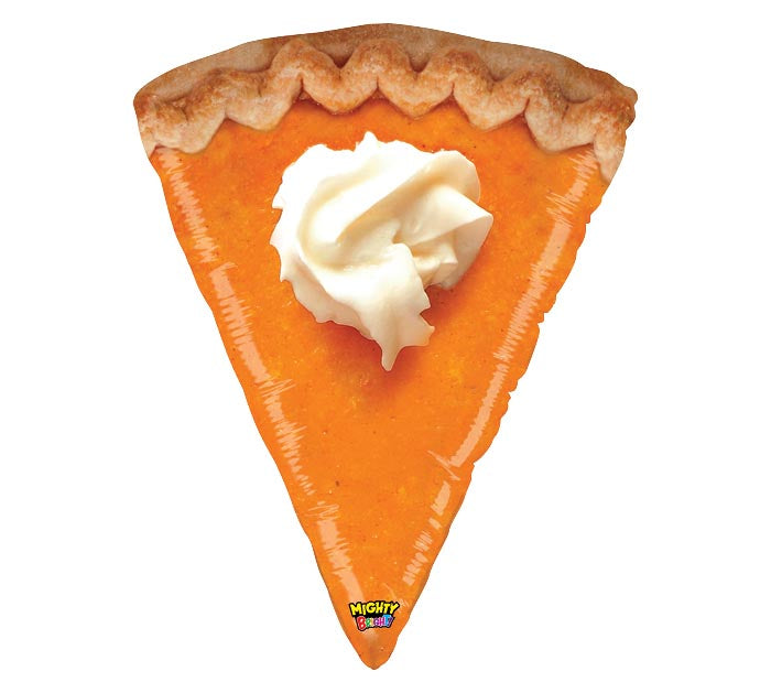 Helium-filled pumpkin pie foil balloon.