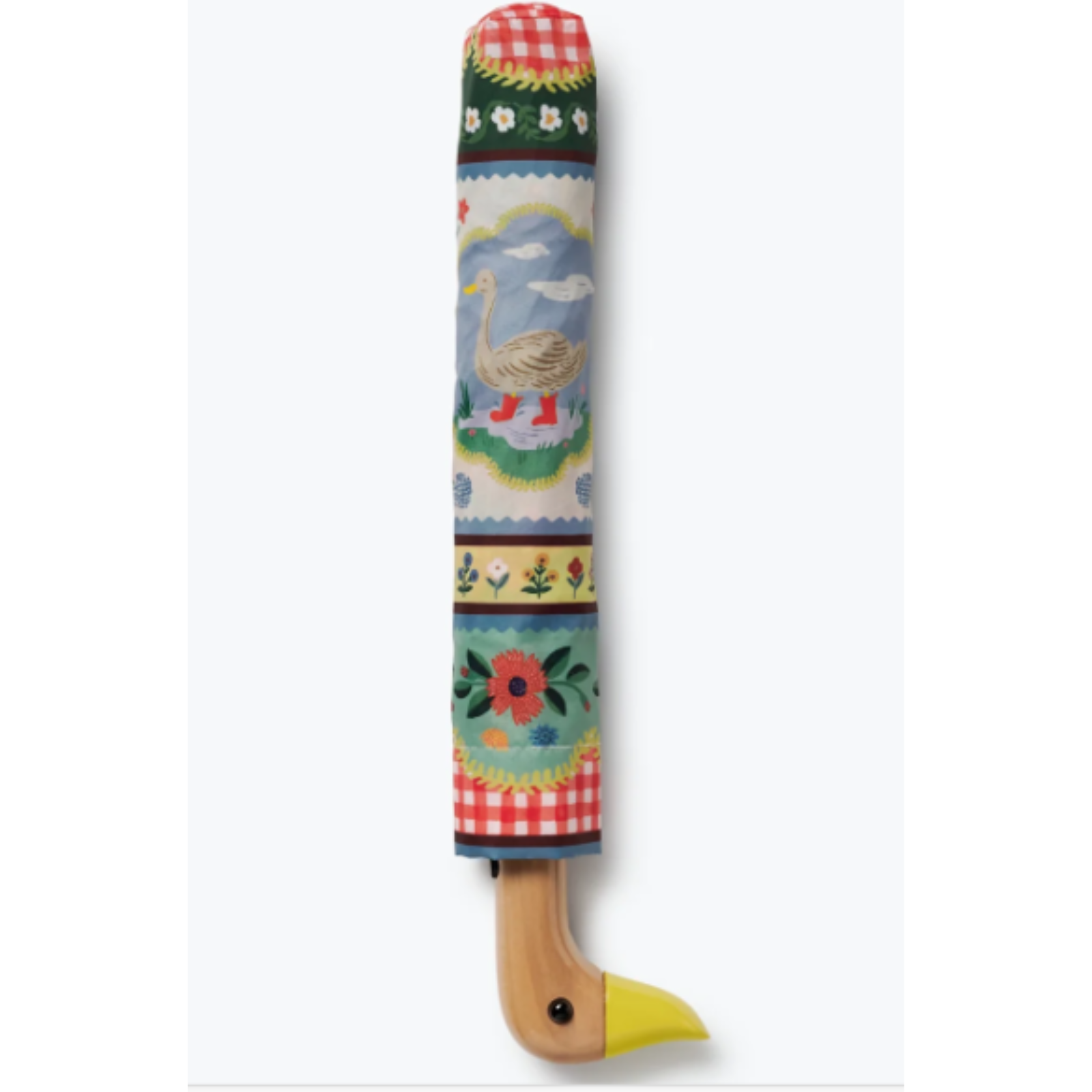 No rainy day blues here. Easily portable, our Home Sweet Home umbrella has an illustrated sleeve, an auto open function, a wrist strap, and a classic wooden duck handle for an extra dose of charm.