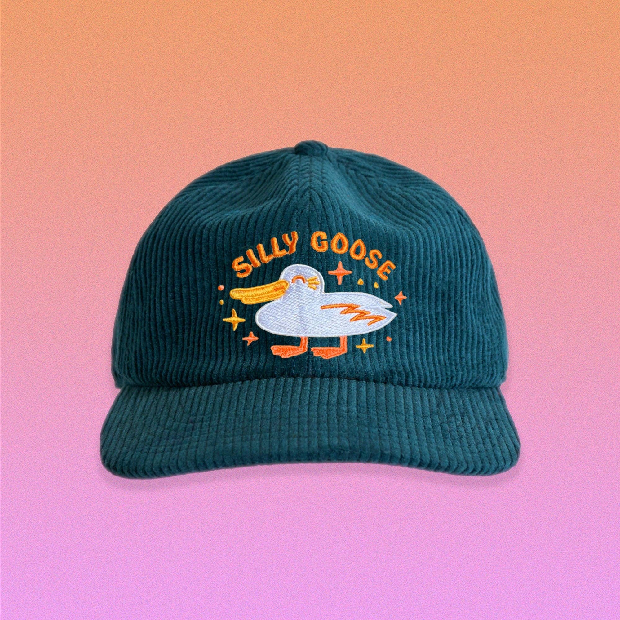 Embrace your silly side with this delightfully embroidered corduroy hat! Crafted with utmost care in a studio in Oregon, this super soft cap is destined to become your new favorite accessory. The whimsical design, skillfully embroidered with high-quality thread, is sure to bring a smile to your face every time you wear it. Whether you're out and about or lounging at home, this hat adds a playful touch to your ensemble.