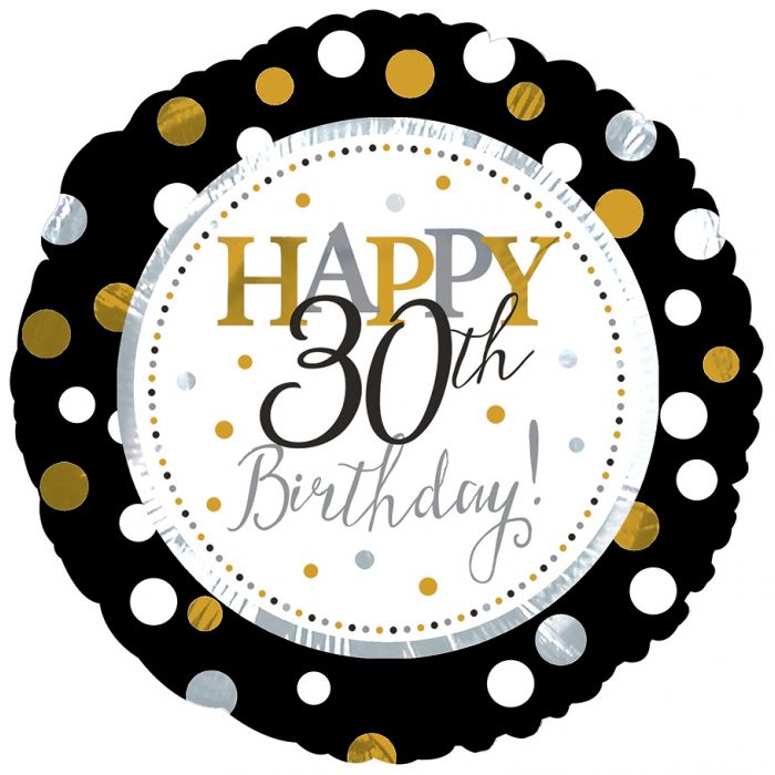 Helium-Filled Happy 30th Birthday Foil Balloon