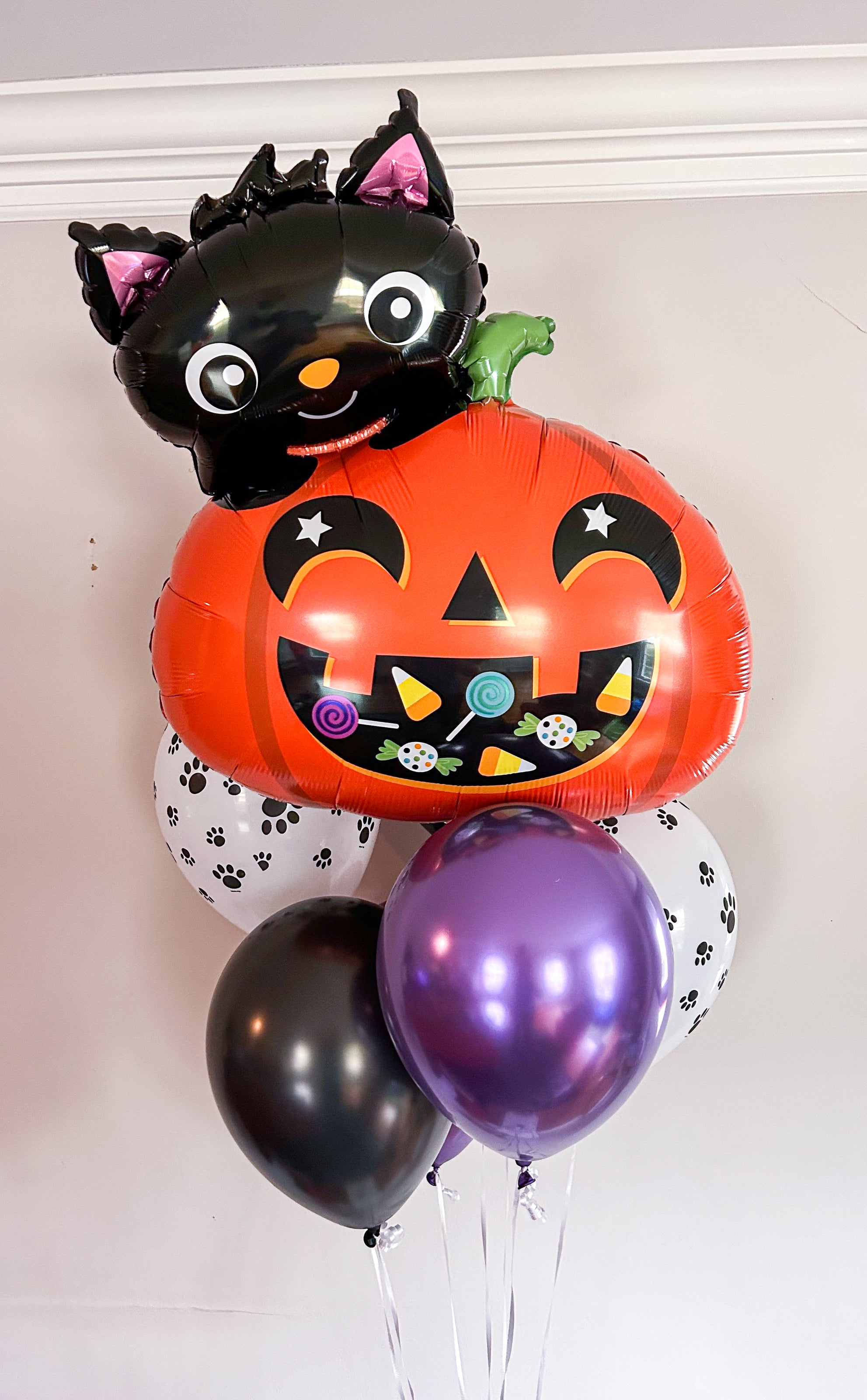 This curious Kitty is ready for Halloween (and candy)! This balloon bundle contains: