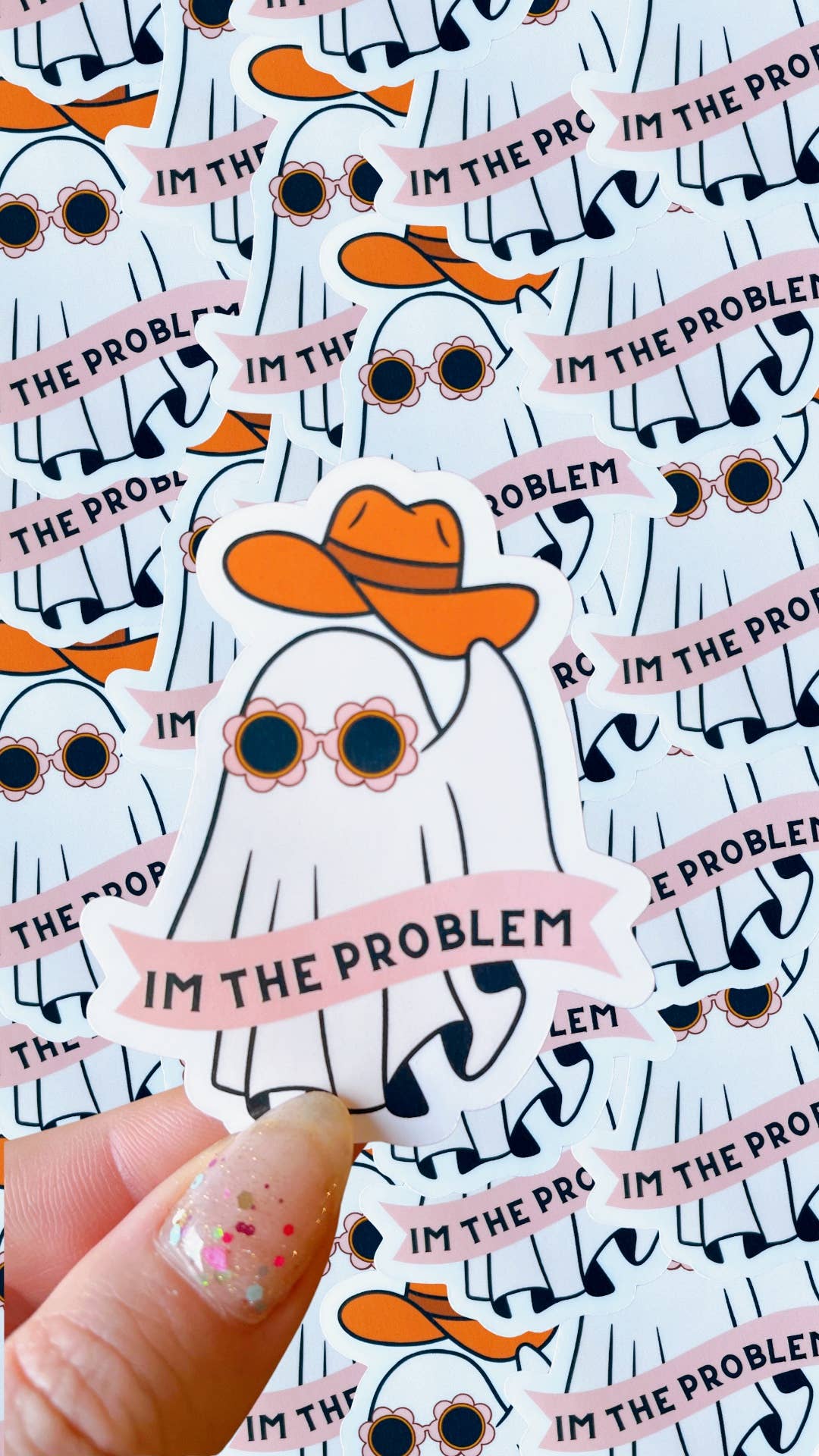 Taylor swift inspired waterproof sticker, ghost with cowboy hat, and the words “I’m the problem”