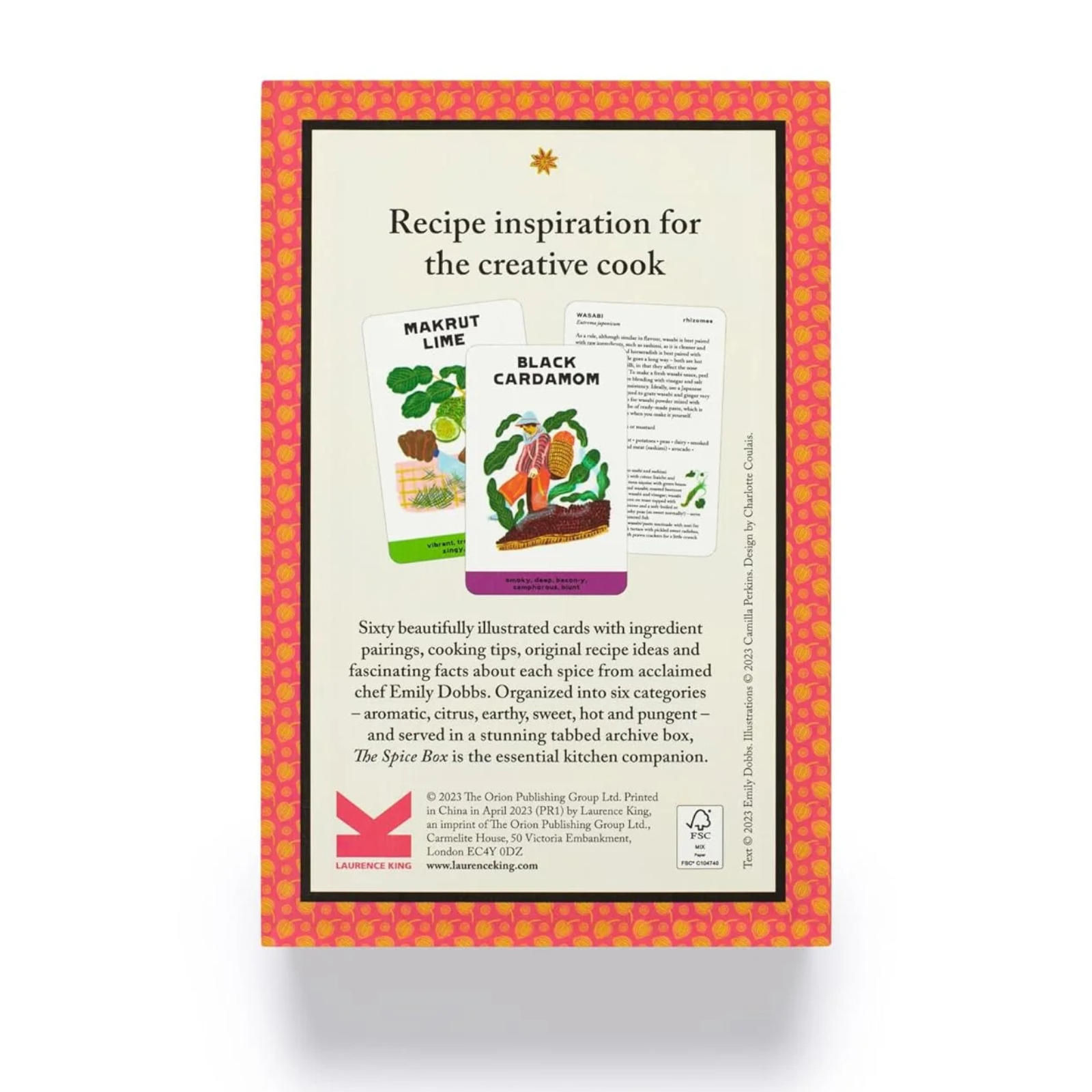 60 beautifully illustrated cards with ingredient pairings, cooking tips, original recipe ideas and fascinating facts about each spice from acclaimed chef Emily Dobbs. Organized into six categories - aromatic, citrus, earthy, sweet, hot and pungent - and served in a stunning tabbed archive box, The Spice Box is the essential kitchen companion.