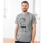 Airlume combed and ringspun cotton/polyester Soft navy print on heather grey cotton/poly unisex t-shirt.