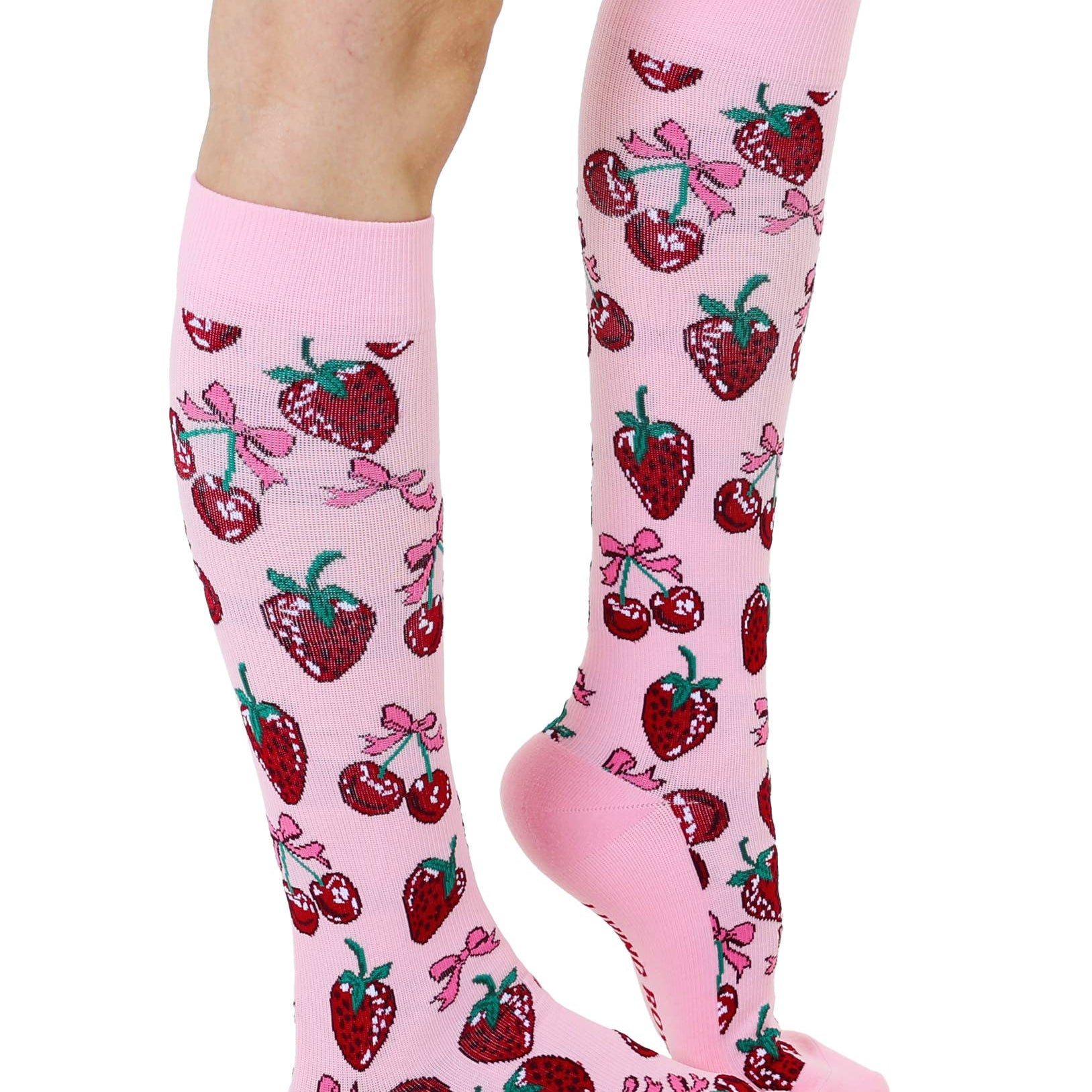 Compression Socks (15-20mmHg) - Sweet Fruits & Bows - Pink