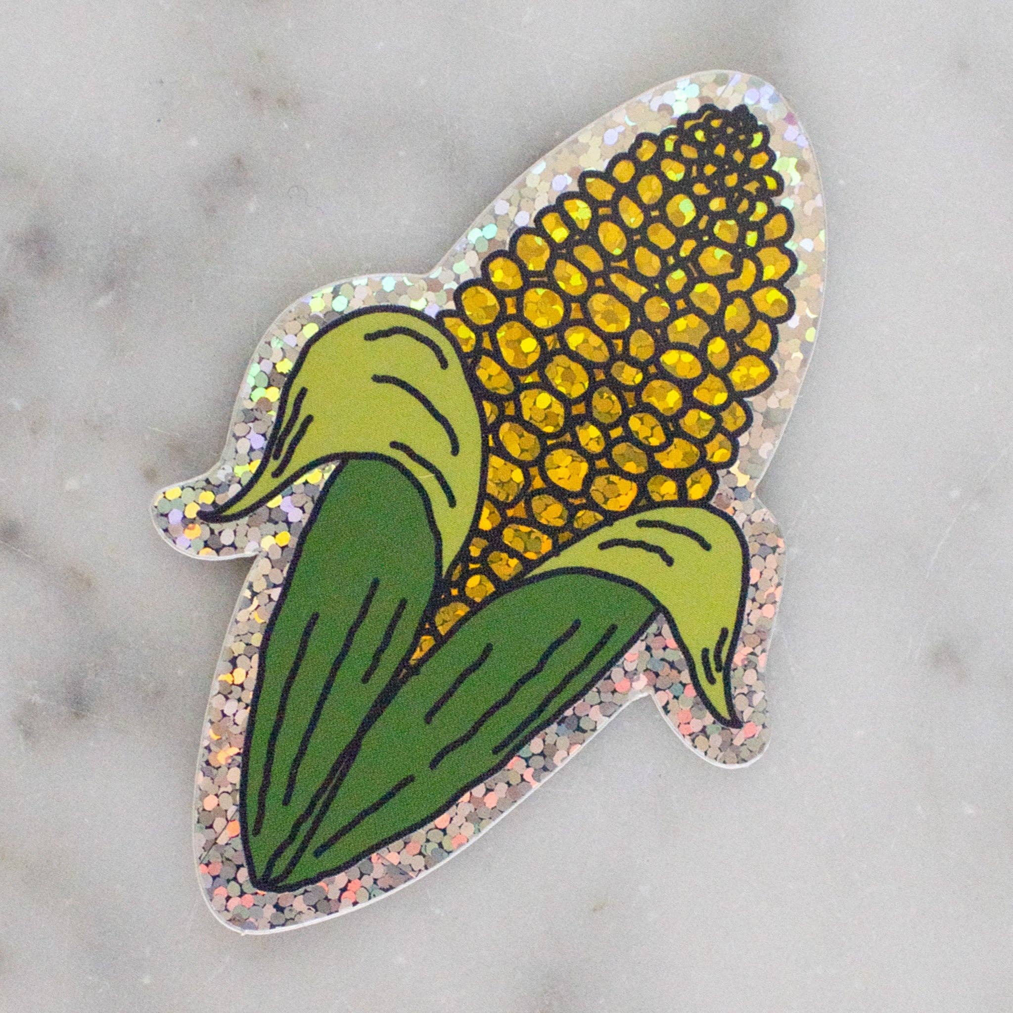 A glittery corn sticker - the lump with the knobs that shines and sparkles with a holographic glittering effect - I've never seen a more beautiful thing!