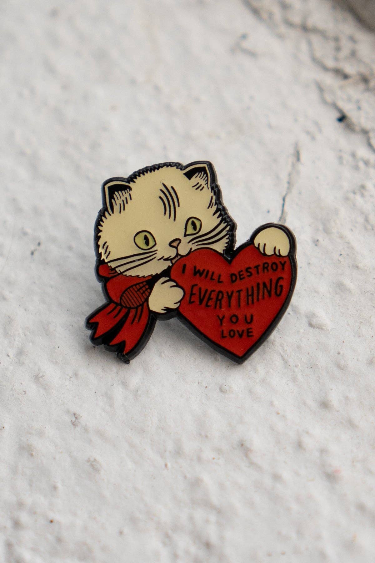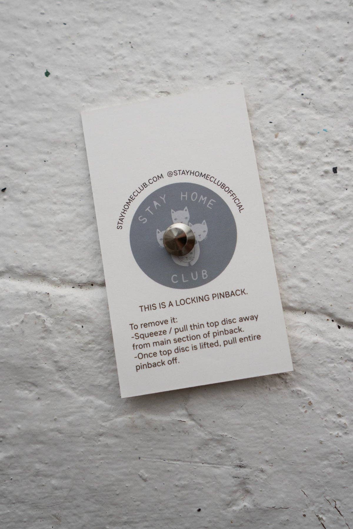 1" wide lapel pin in matte black metal and soft enamel with glossy epoxy coating. Comes on branded card with locking pinback.