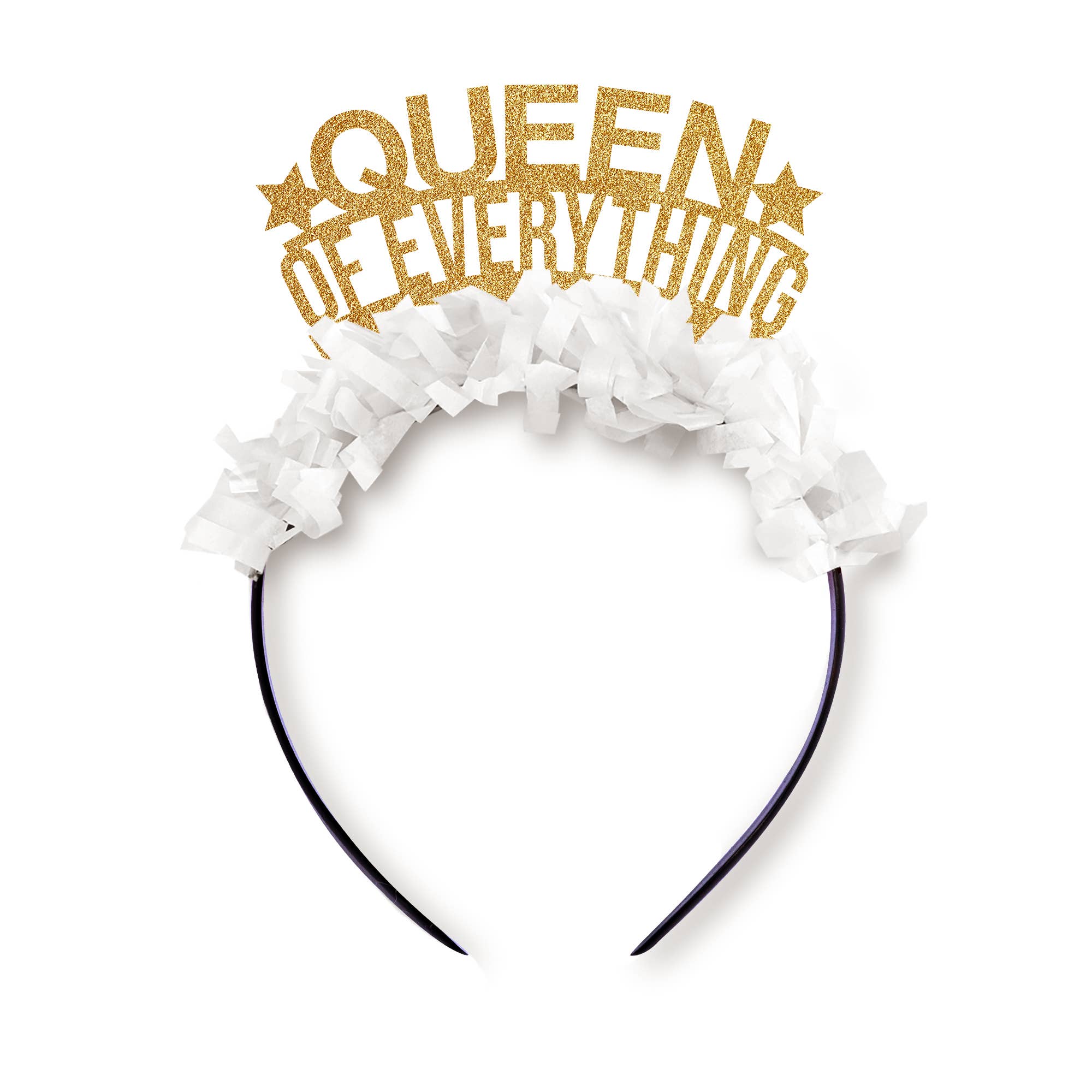 Queen of Everything Birthday Headband Party Crown: Gold words/Hot Pink fringe
