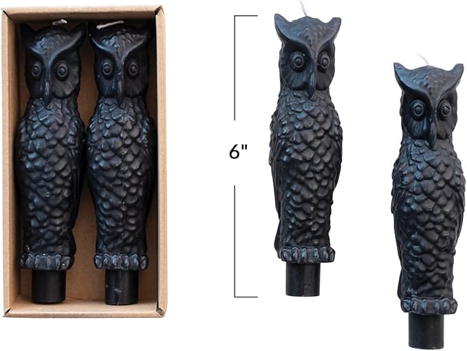 Add a touch of spooky to your decor with this unique set of 2 unscented black owl taper candles. Each candle is expertly crafted for lasting performance, making them perfect for any occasion.