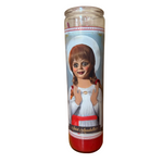 Halloween Season is upon us; even non-virgins should be picking up this Prayer Candle featuring this iconic Woman of Horror. The image is photoshopped then printed and pasted to a traditional "7 day" white altar candle.