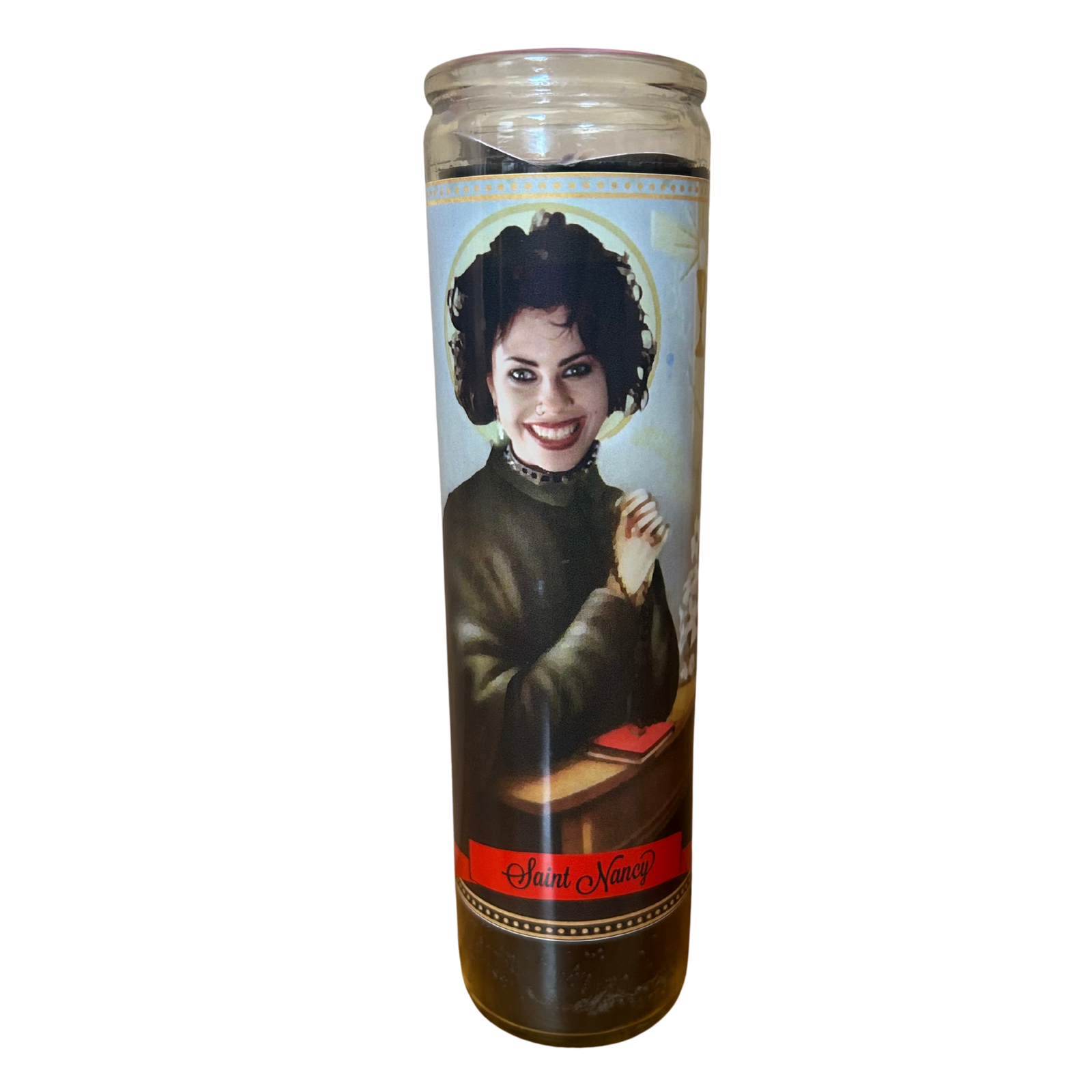 Halloween Season is upon us; even non-virgins should be picking up this Prayer Candle featuring this iconic Woman of Horror. The image is photoshopped then printed and pasted to a traditional "7 day" white altar candle.