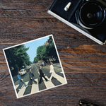 This coaster features the cover of the album Abbey Road by The Beatles. Coasters are 4.25 inches x 4.25 inches and are made of ceramic and durable vinyl. The back of the coaster is cork, stamped with the Lucky Manufacturing Logo. Each coaster is proudly handmade in the USA. Coasters come with no packaging.