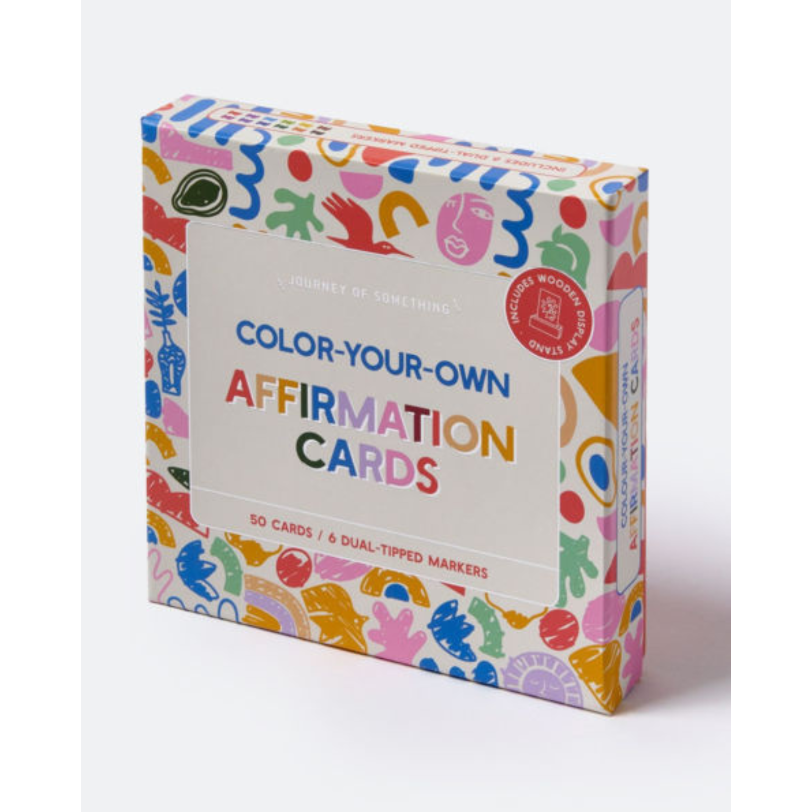 Turn affirmations into a creative habit with this Color Your Own Affirmation Cards Kit! Featuring 50 beautifully designed cards with uplifting messages, this kit lets you color, personalize, and display affirmations that inspire and motivate you daily. Just take five minutes a day to color a card and repeat its powerful message, display it on the wooden stand as a visual reminder of positivity, growth, and self-care.