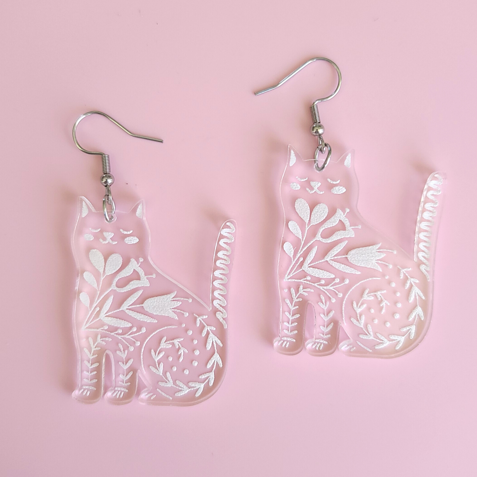 Folk Clear Cats Acrylic Earrings