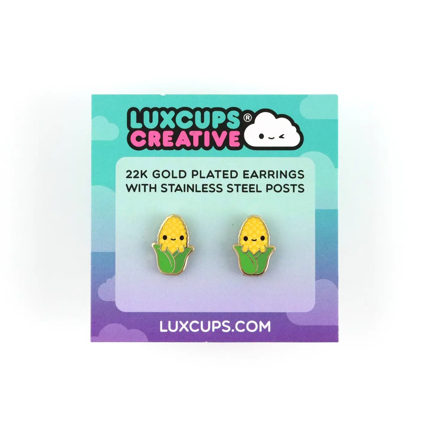 All 0.5'' enamel earrings are plated in 22k gold with stainless steel posts.