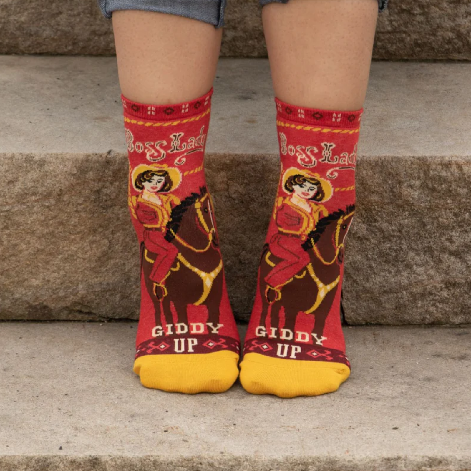 Lasso these funny socks before they're gone! Our favorite cowgirl decided to mosey on over to the Ankle Sock Corral, and we welcomed her with open arms. Not like we had a choice.