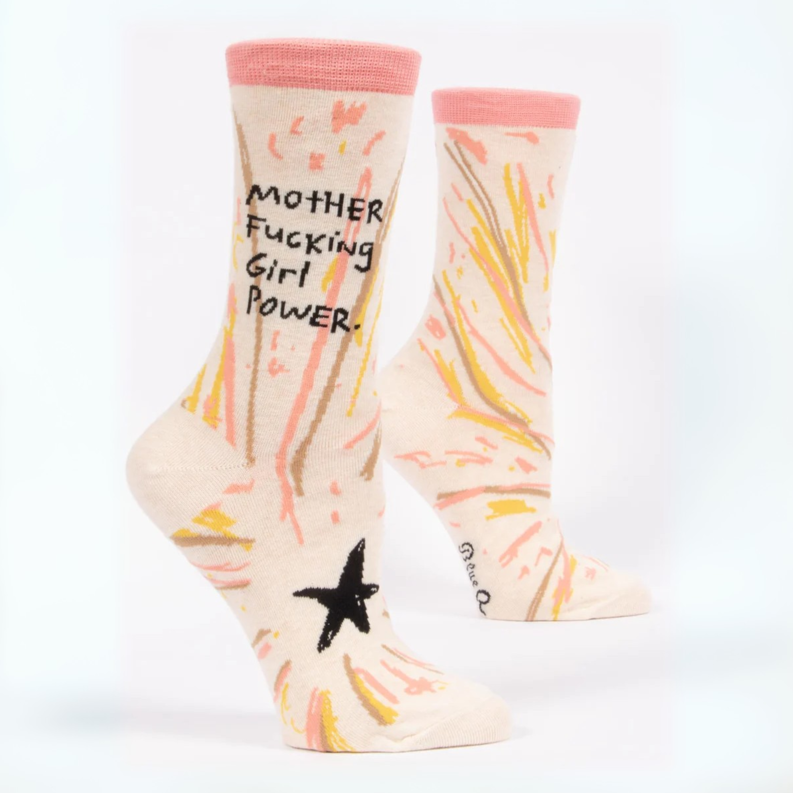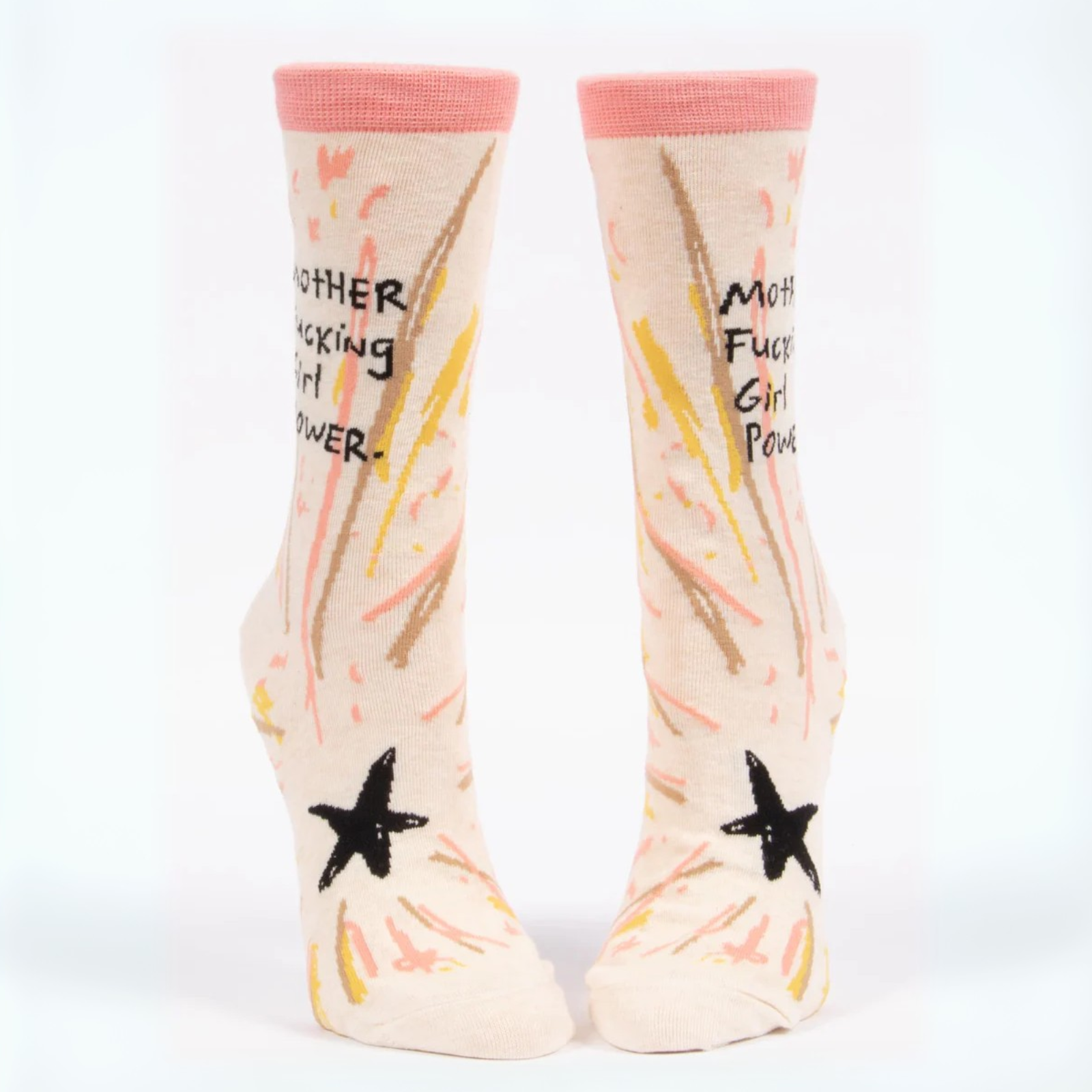 Blue Q Women's Crew Socks 'Motherfucking Girl Power'