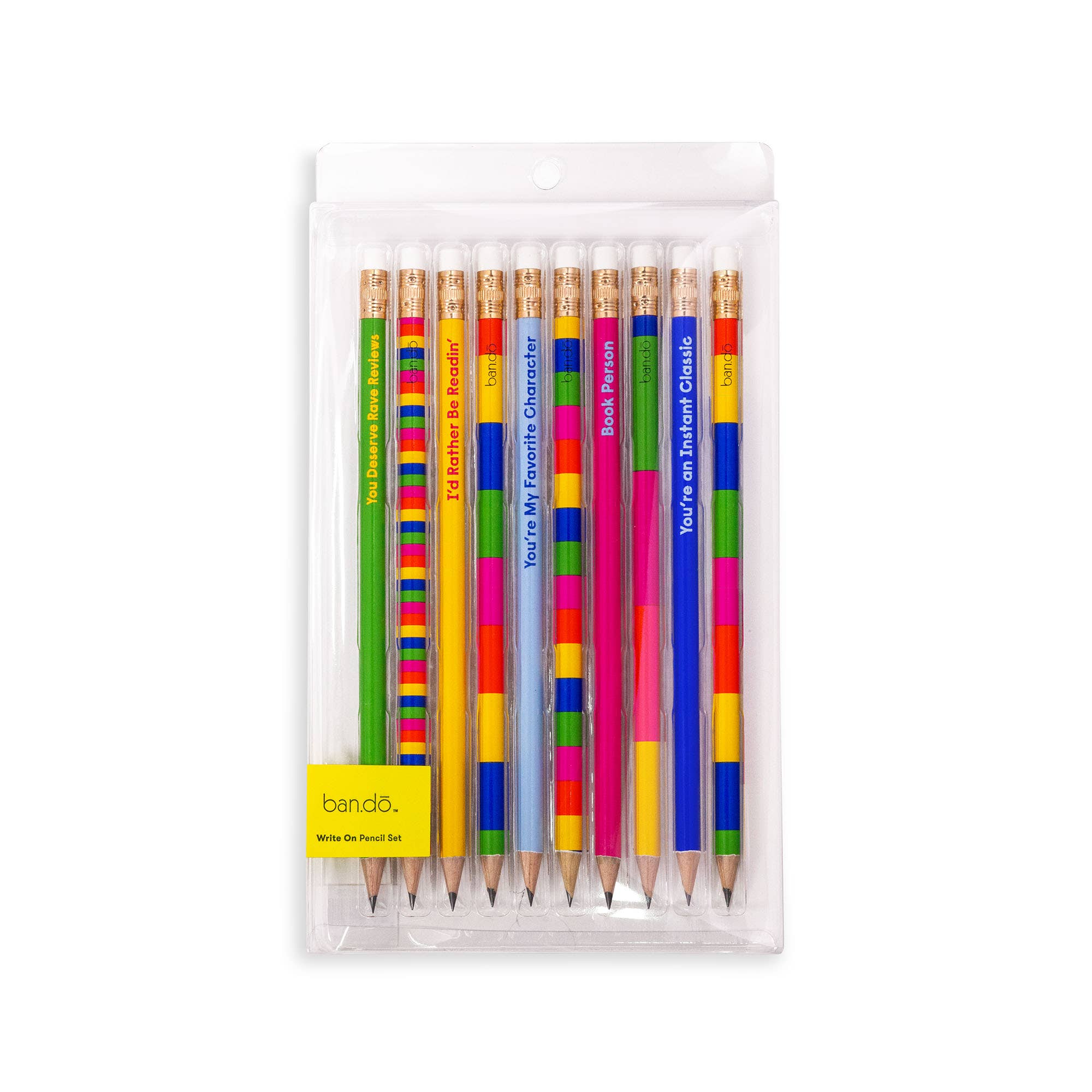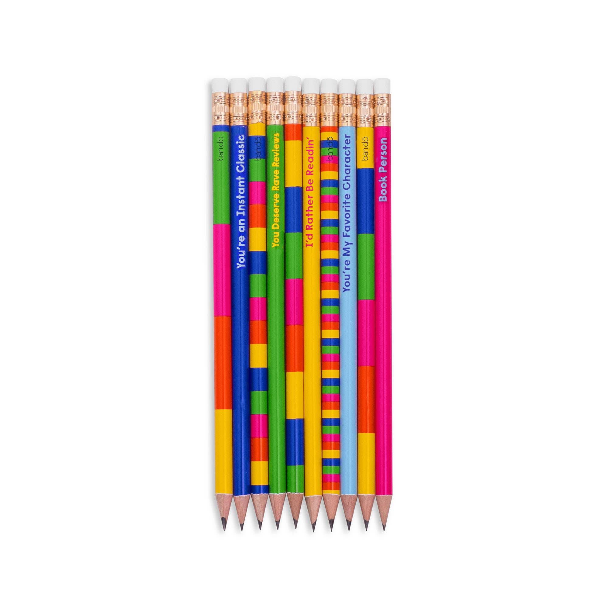 Pencils and possibilities go hand in hand. This is a set of ten—each one with a unique saying or colorful design.