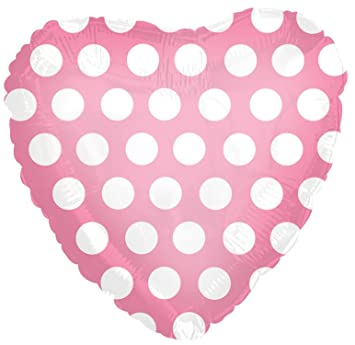 18" Pink and White Dot Heart Balloon
