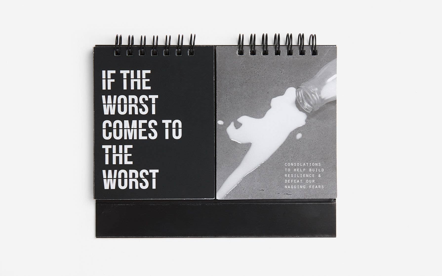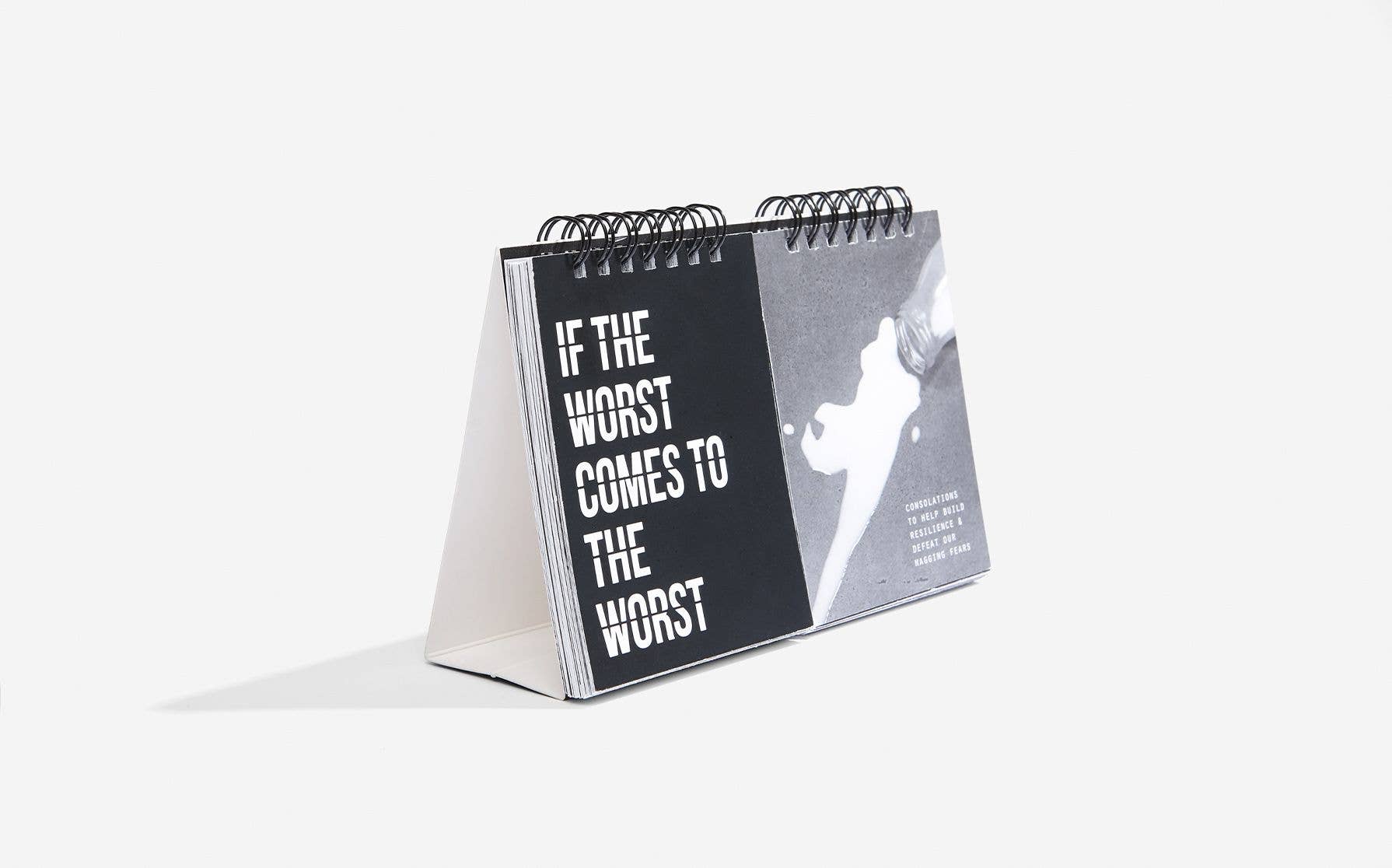 Introducing our desktop flip book of consolations, the ultimate tool for building resilience and conquering our nagging fears. This wiro-bound masterpiece is not only functional but also a beautiful addition to any space. Crafted with love and care, this freestanding flip book is designed to inspire and uplift. Printed on FSC Mix paper, it showcases a collection of heartfelt consolations to provide comfort and strength.
