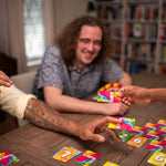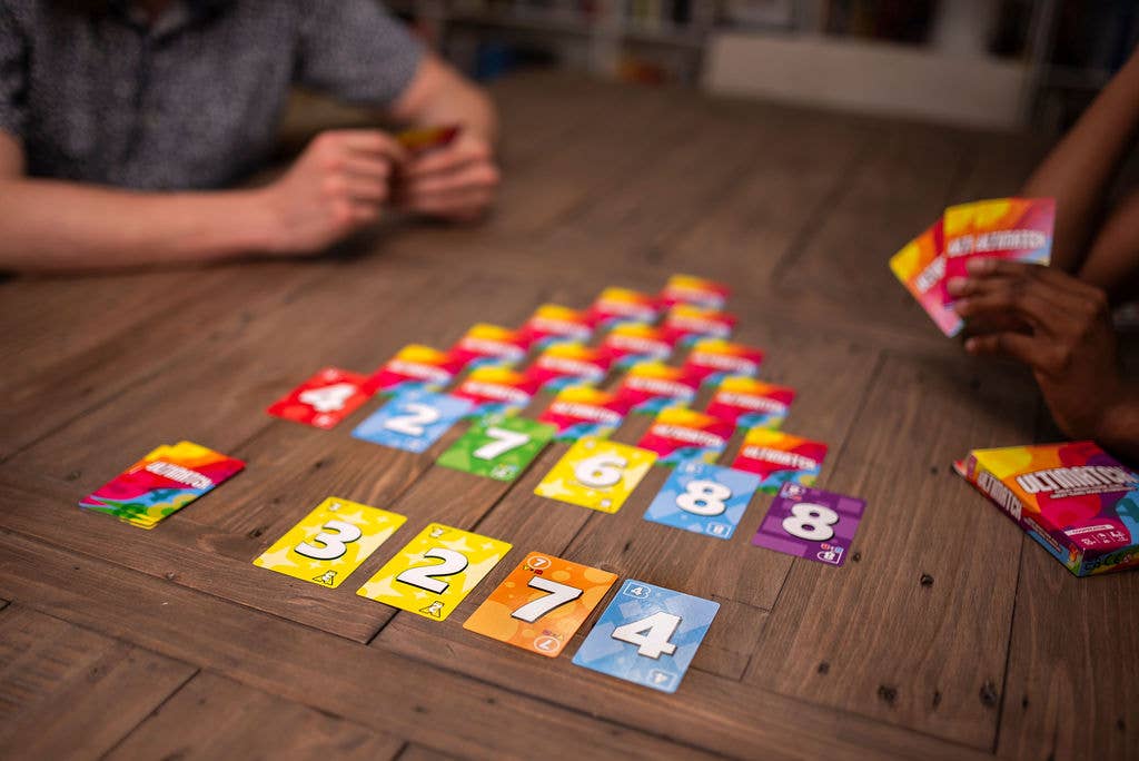 Make clever matches by number or color. Will you use 1 card or 2? Addition or subtraction? Mix colors (yellow + blue = green)? Will you risk a card now or save it for later? Can you guess what card the other player needs? Make a perfect match of both number and color to feel the thrill and gain the rewards of an Ultimatch!