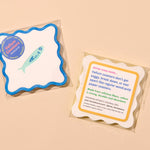Our vibrant, modern coasters are letterpress printed on durable and absorbent vellum. Vellum coasters won’t get soggy, break down or tear apart like wood-pulp paper coasters. Now in smaller packs of 4 so you can mix and match!