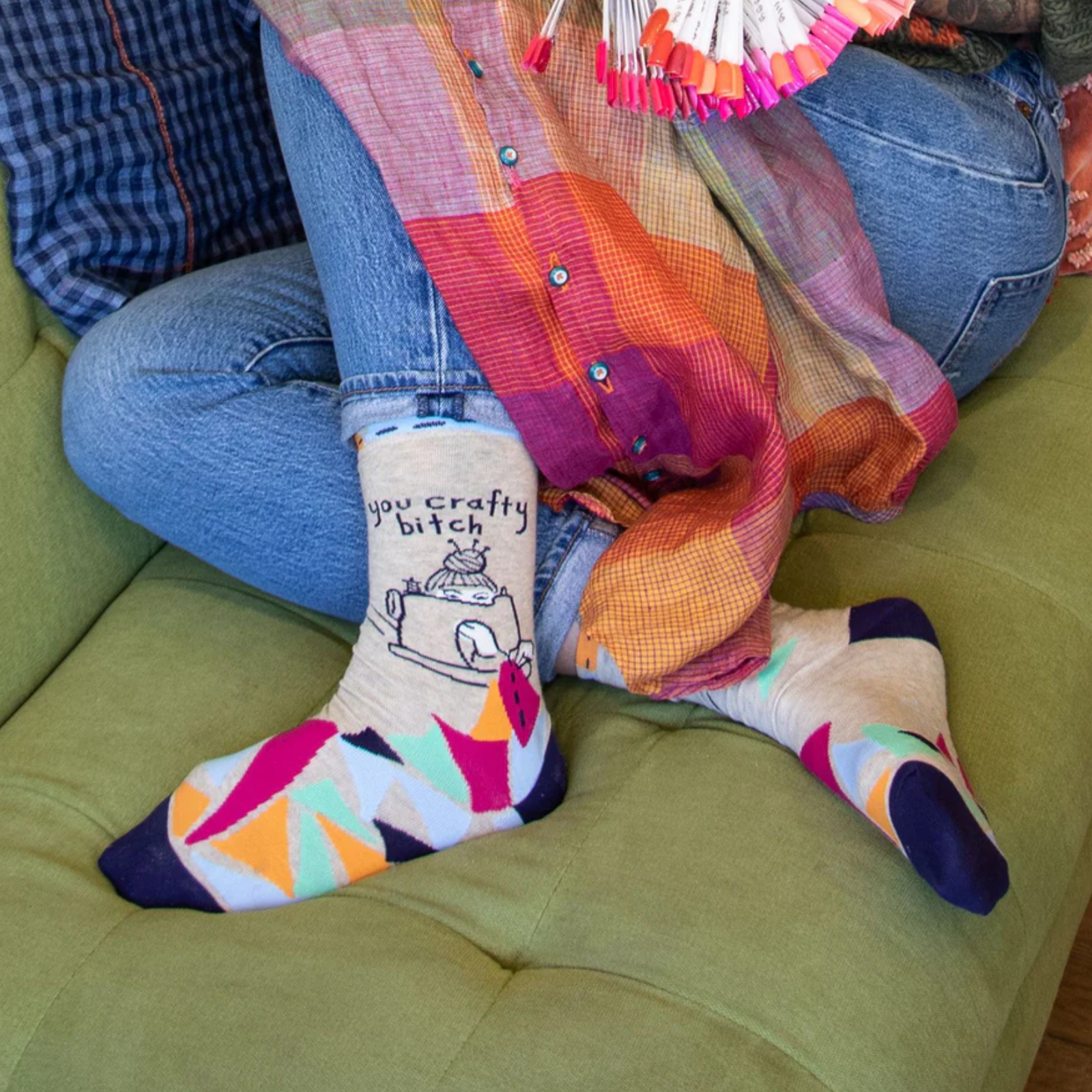 Blue Q Women's Crew Socks 'You Crafty Bitch'