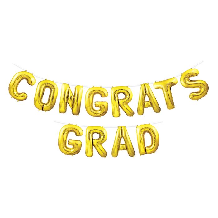 Congrats Grad Balloon Streamer Garland Gold